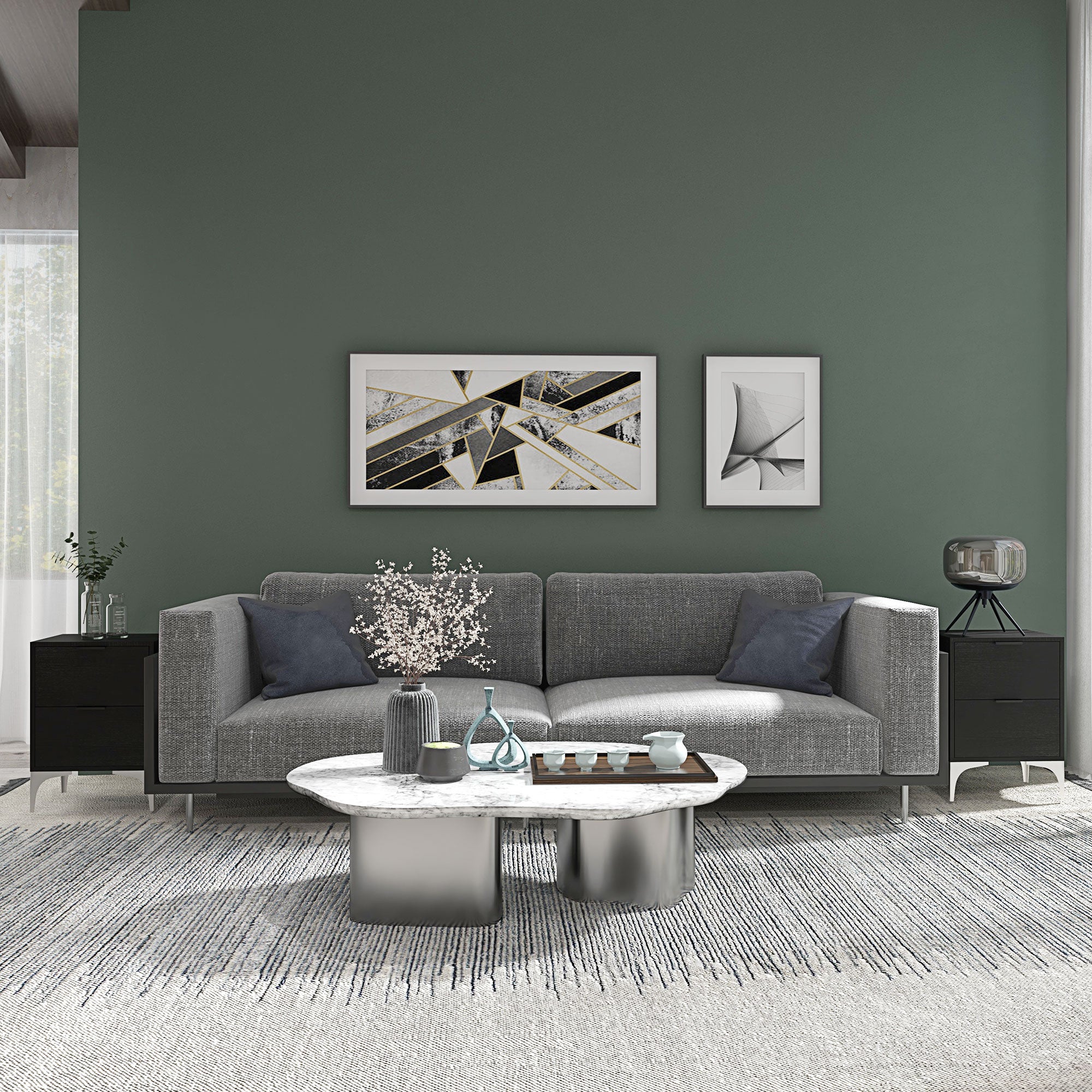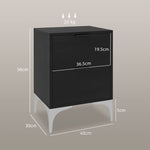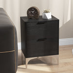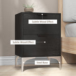Set of Two Wood Effect Bedside Tables with Silver Tone Steel Base, Black