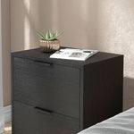 Pair together or style apart these bedside tables. In a wood effect design, these two nightstands are classically stylish, and mixing them with your current furniture is practically effortless. Made from particle board, they are sturdy and suitable for everyday use, with two drawers to hold plenty of bedtime essentials. Use the tabletop for extra holding space. Finished with steel legs for strong support.