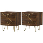 Bedside Tables Set of 2, Modern Side Table Set with 2 Drawers and Steel Hairpin Legs, Nightstand for Bedroom, Brown Wood Grain
