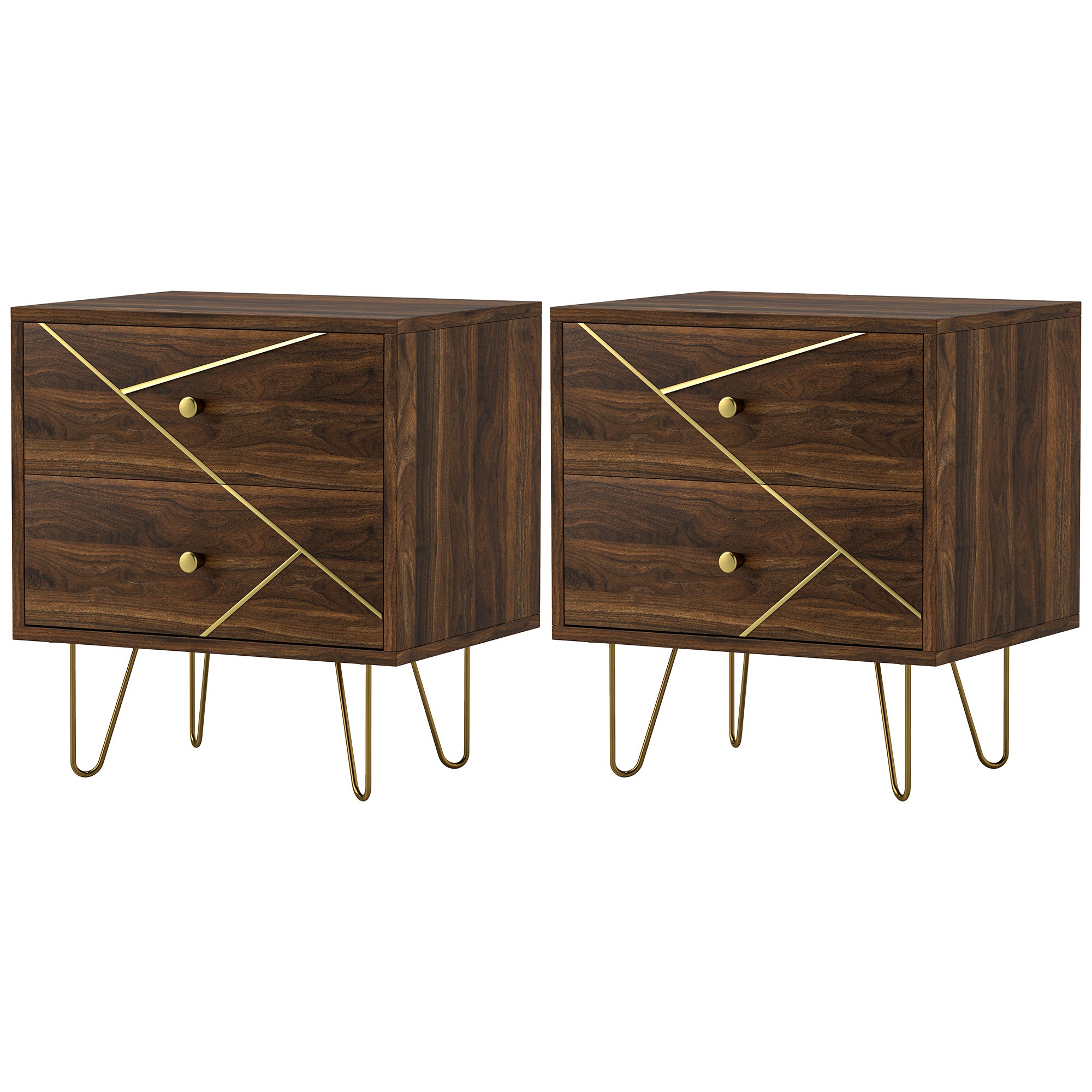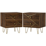 Add a touch of elegance to your bedroom with the bedside tables. This set features chic golden steel lines on the drawer panels and sleek gold tone hairpin legs. With two spacious drawers each, these small bedside cabinets offer lots of storage while the wood grain veneer exudes a cosy, stylish vibe.