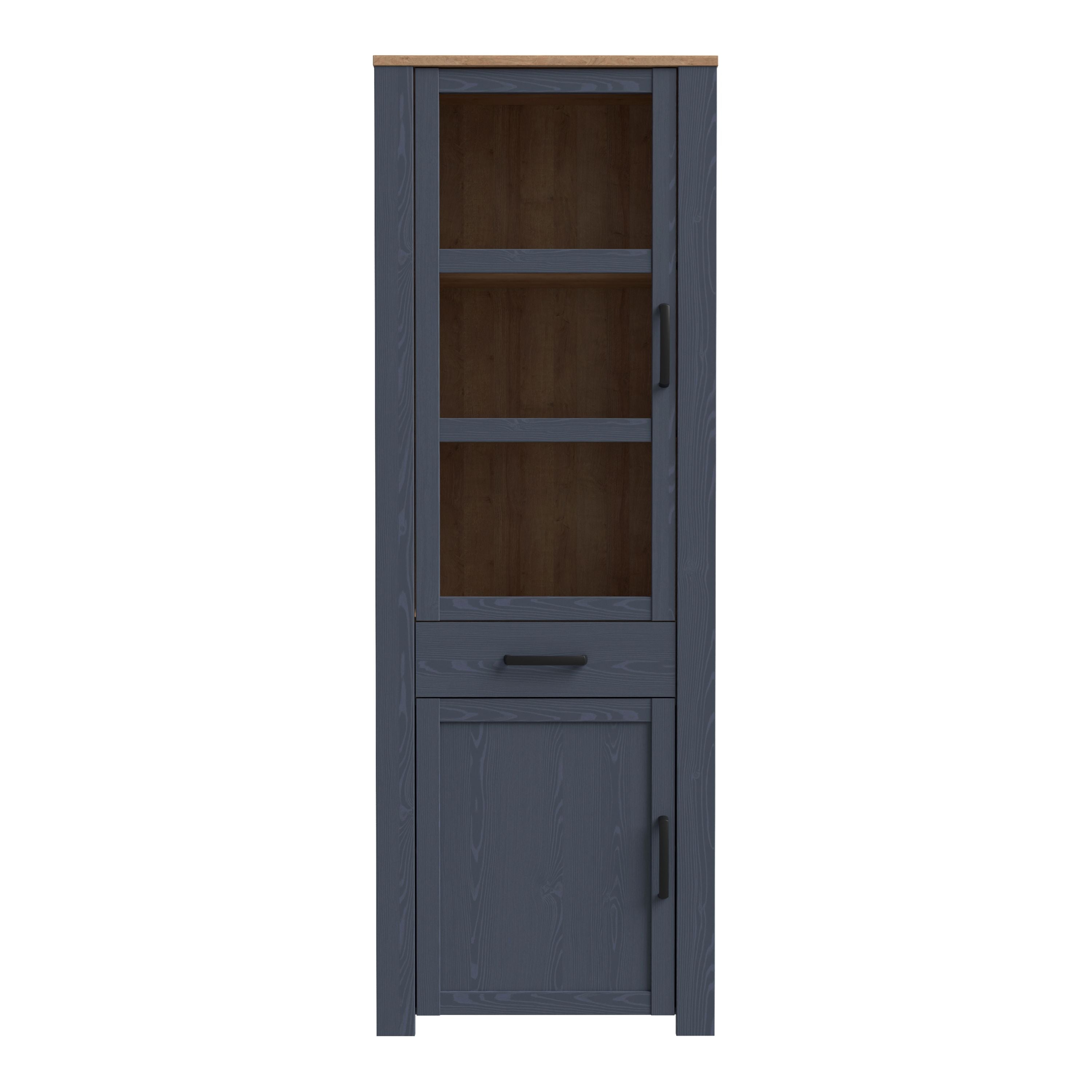 Bohol 2 Door 1 Drawer Narrow Display Cabinet in Riviera Oak & Navy