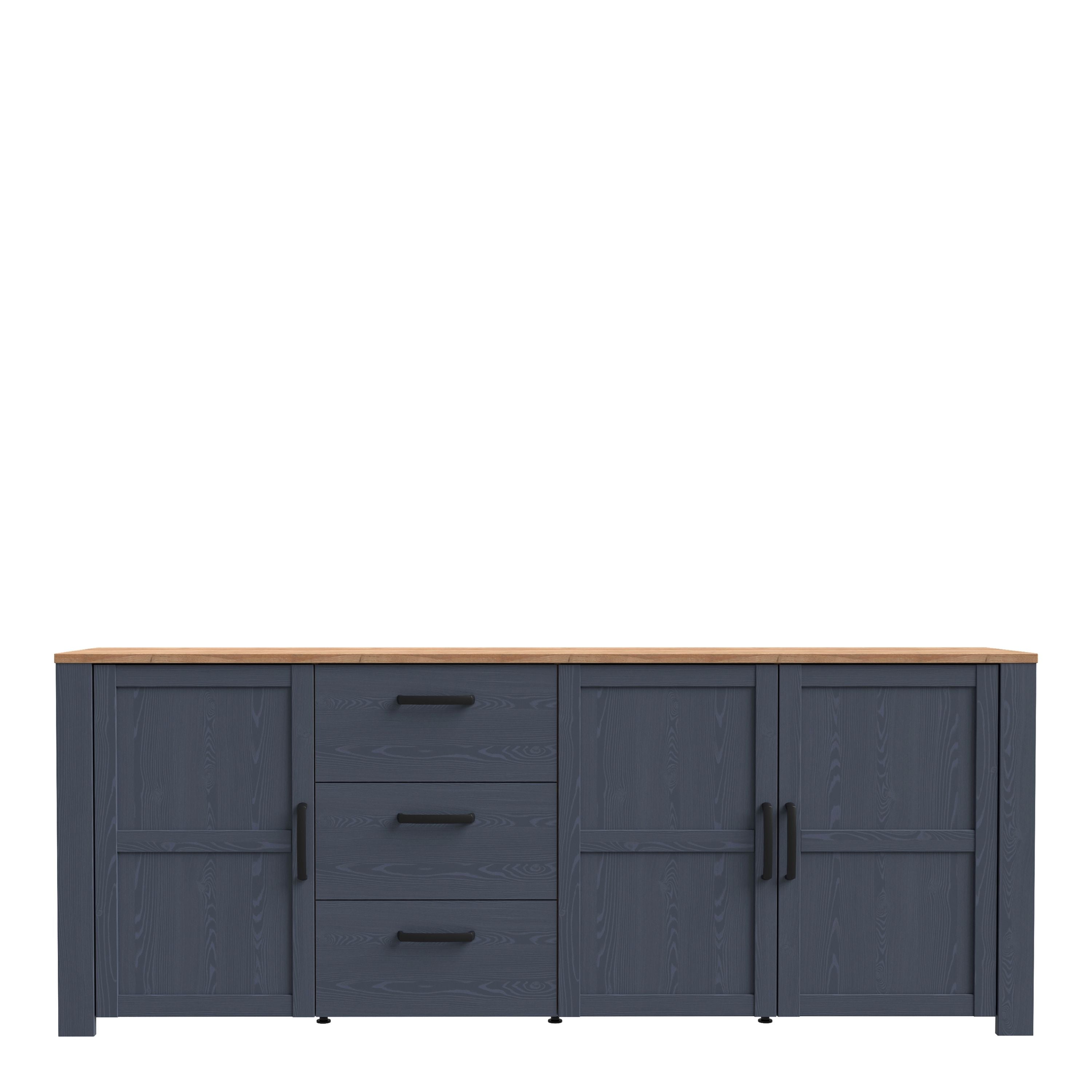 Bohol 3 Door 3 Drawer Wide Sideboard in Riviera Oak & Navy