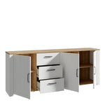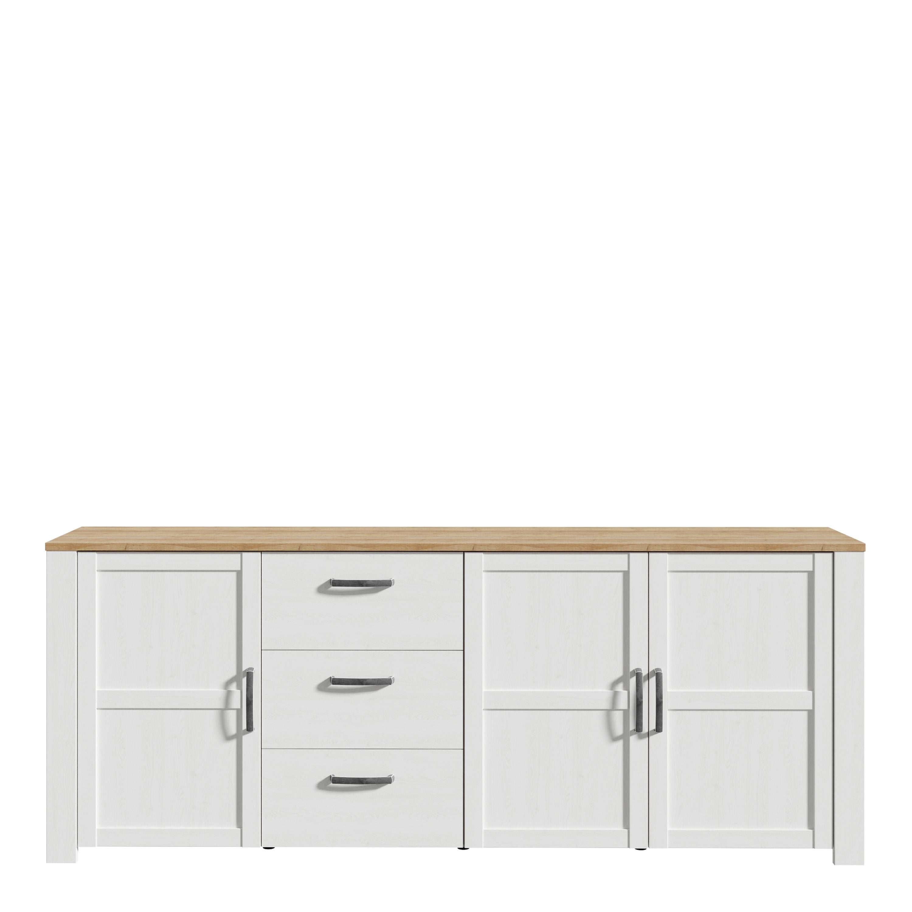 Bohol 3 Door 3 Drawer Wide Sideboard in Riviera Oak & White
