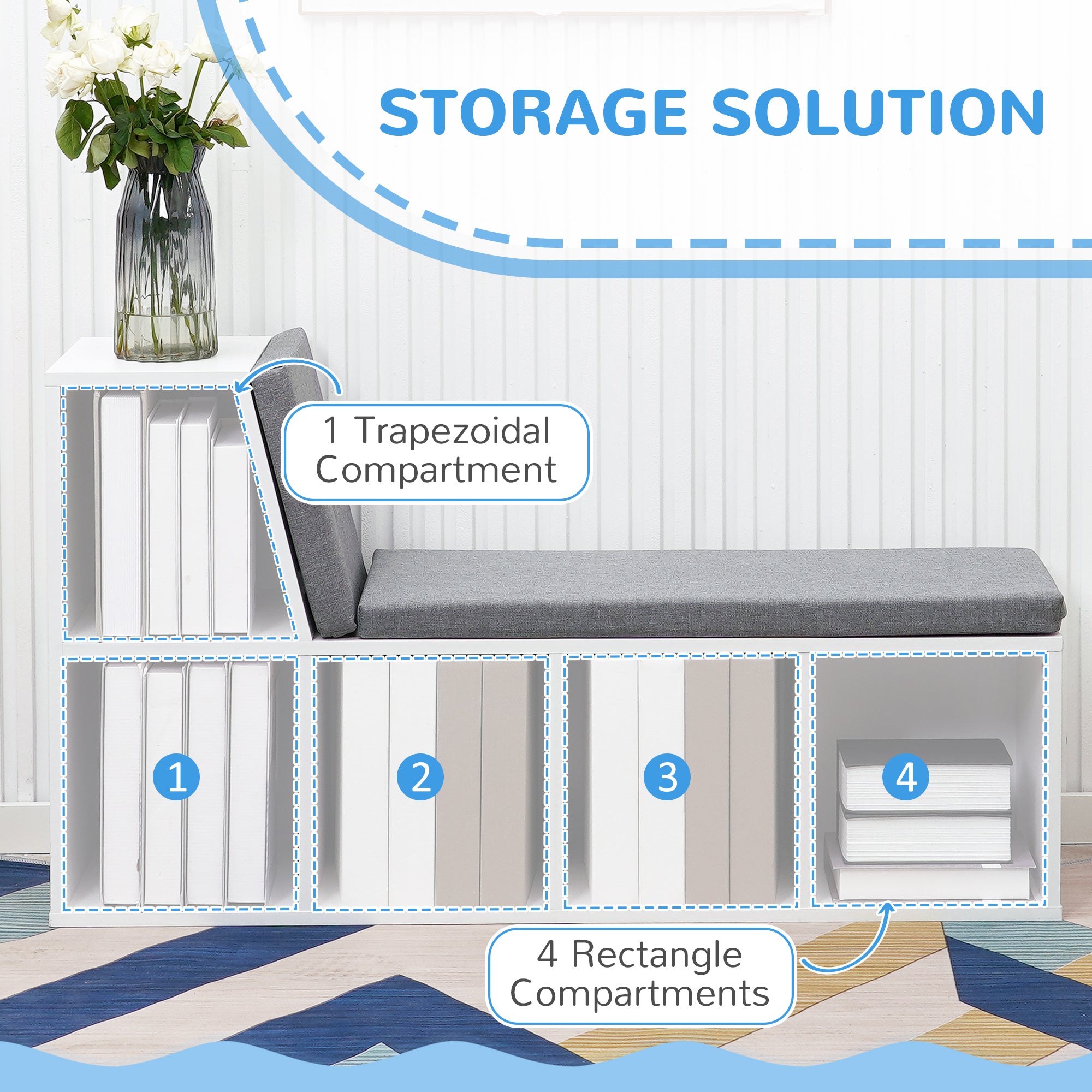 Bookcase Storage Shelf with Cushioned Reading Seat, Bookshelf Storage Cabinet for Study Living Room, White