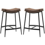 Breakfast Bar Stools Set of 2, Microfibre Upholstered Barstools, Industrial Bar Chairs with Curved Seat and Steel Frame for Dining Room, Kitchen, Brown