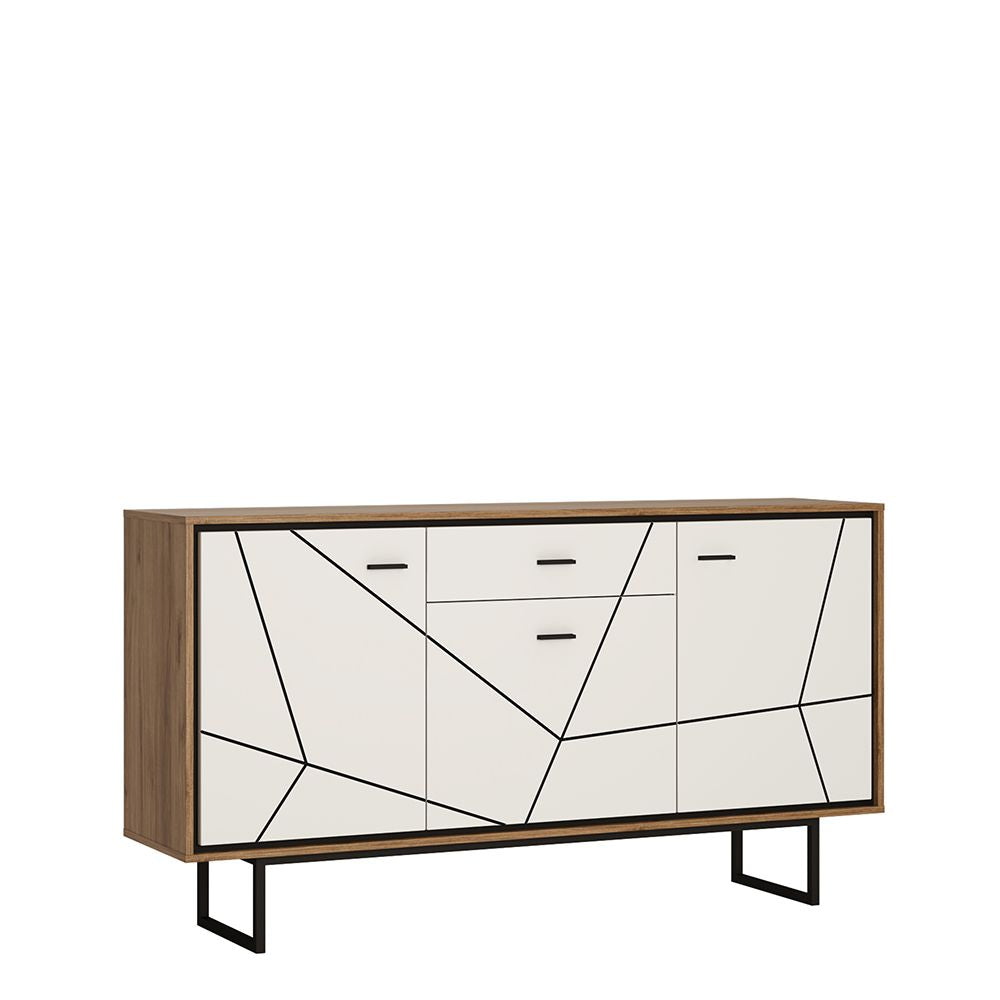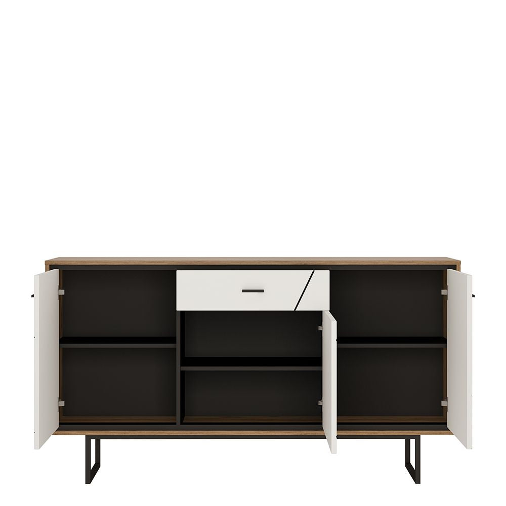 Brolo 3 Door 1 Drawer Sideboard in White, Black & Dark Wood