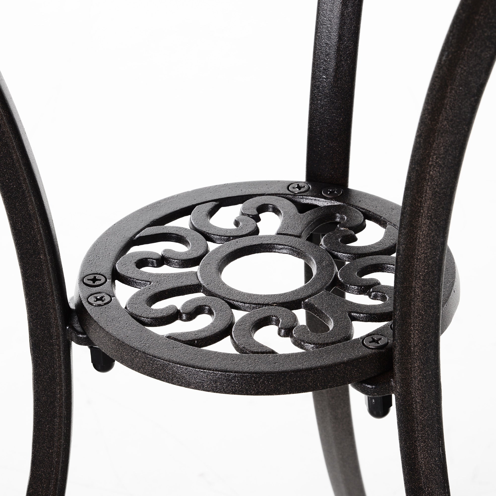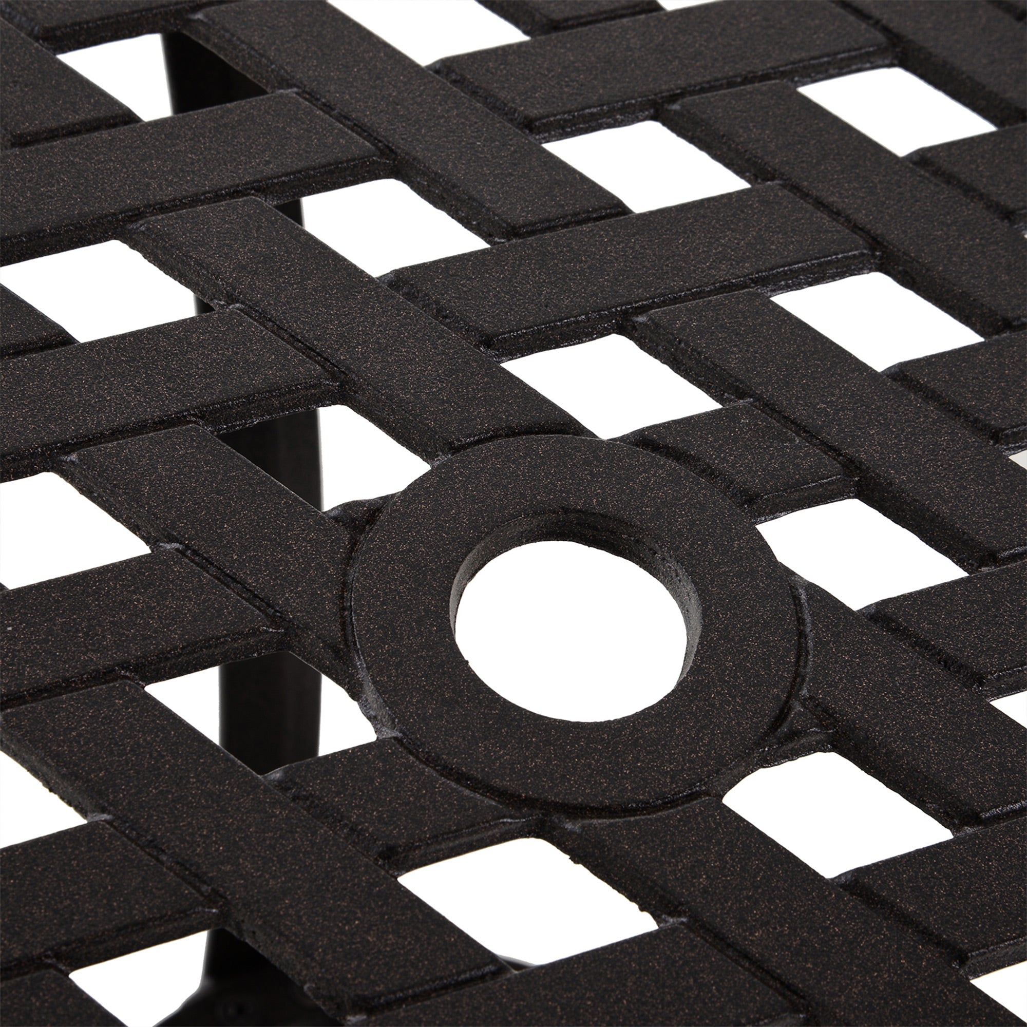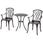 This three-piece outdoor garden furniture set from will give you the optimal spot to dine and relax. It's formed of two chairs and a matching table, with cast aluminium forming the frame of all pieces to ensure they are robust and tough. Round in shape, the table features a middle hole to keep a sun parasol securely in place, with the back of the chairs showcasing a cut-out design for an attractive finish. Our outdoor table and chairs are great for flats and apartments with balconies.