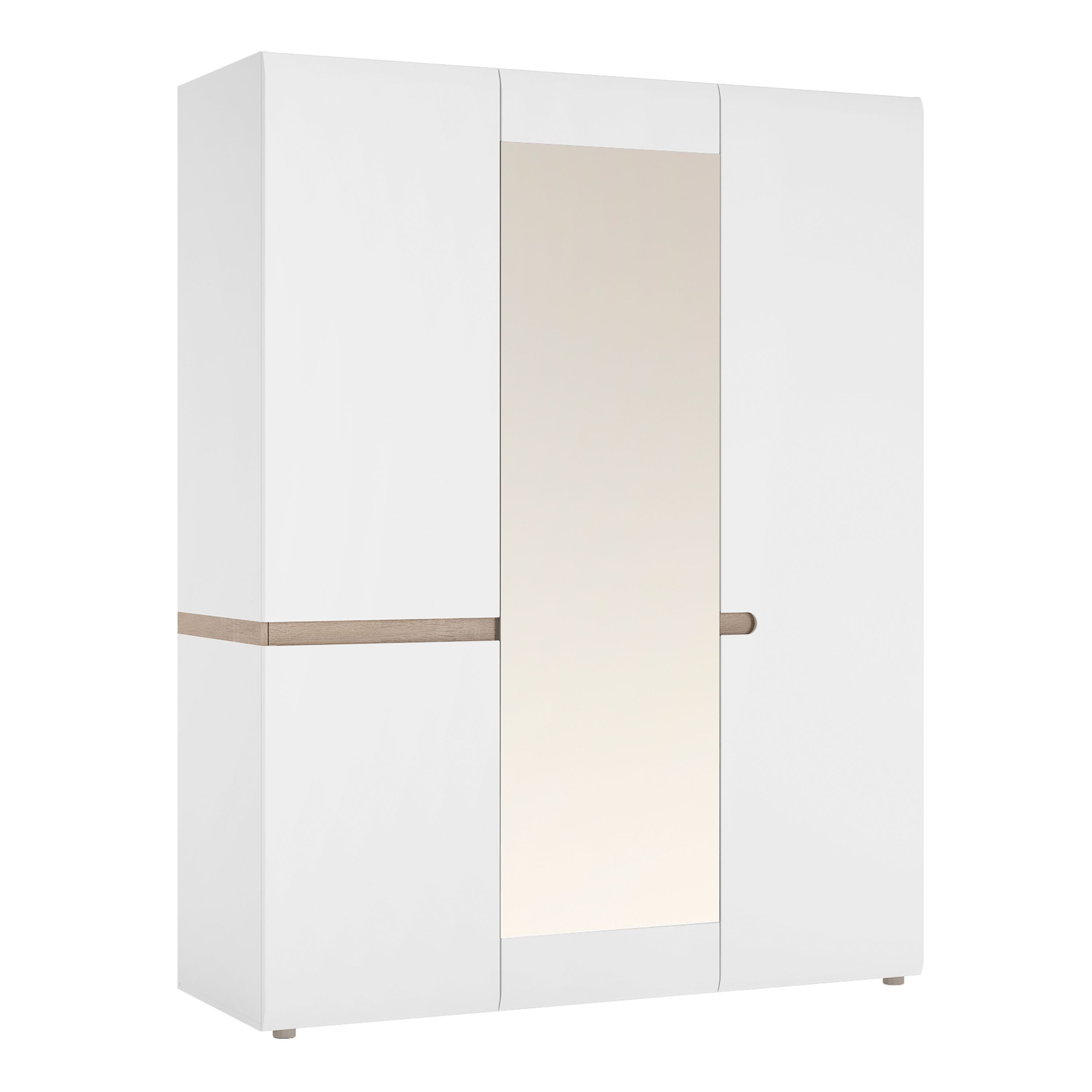 Chelsea 3 Door Wardrobe with Mirror & Internal Shelving in White with Oak Trim
