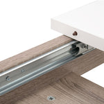 Unconventional design - a proposal for the followers of the latest trends. The clever mix of scratch resistant white melamine with beautiful high gloss legs and oak melamine trim makes this top quality collection of furniture the ideal destination for the most modern of homes, the massive range that includes many cabinets and wall units fulfils every storage and display option.