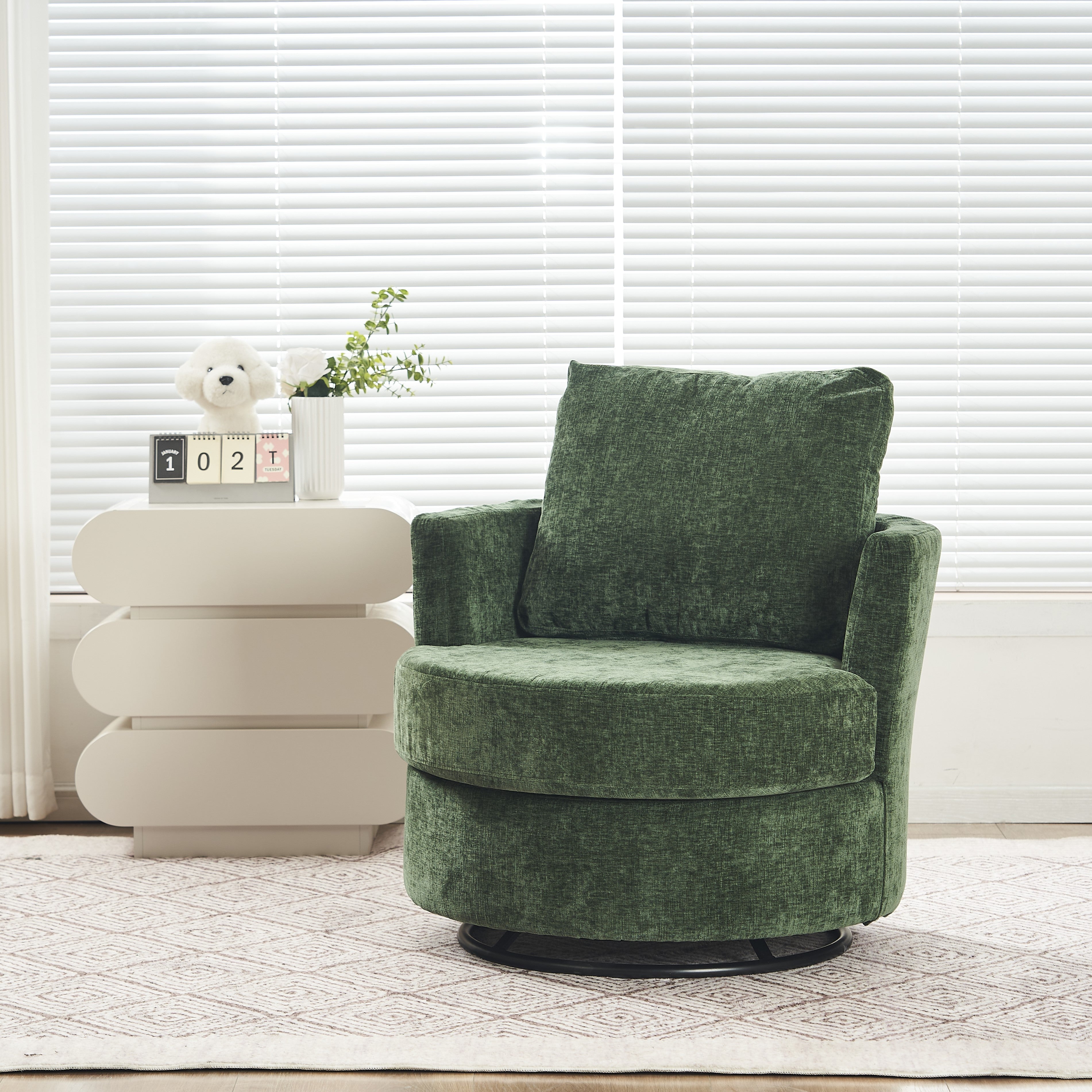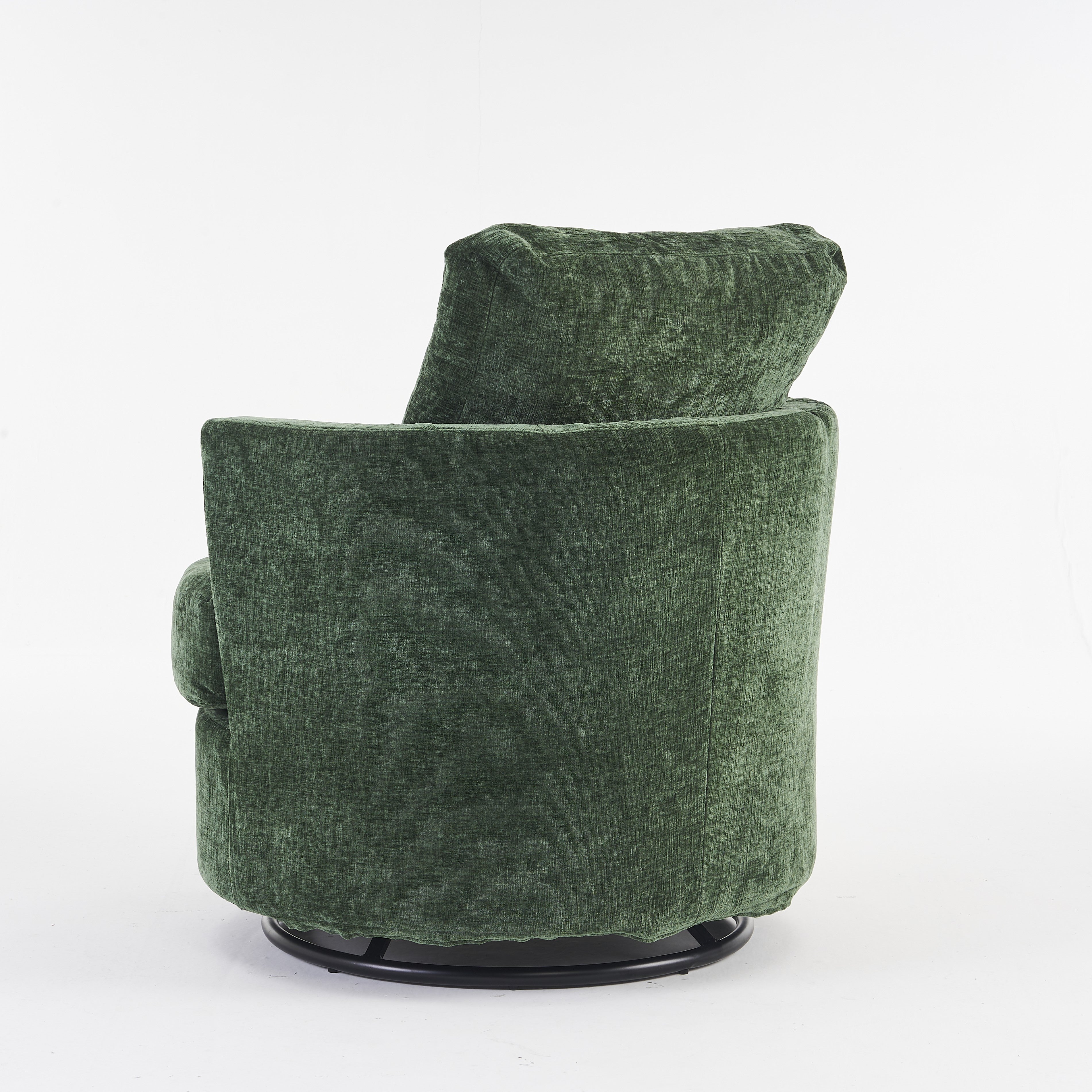 Elevate your living space with this chic chenille swivel armchair in a vibrant green hue. Crafted from soft chenille fabric, it features a thick foam pad and a supportive back cushion for ultimate comfort. The sturdy wooden frame and black round swivel base ensure durability, while its 360° swivel function adds a touch of modern convenience. Easy to assemble in just five minutes, this versatile chair is perfect for any room, from the living room to the bedroom or even a cosy coffee shop.