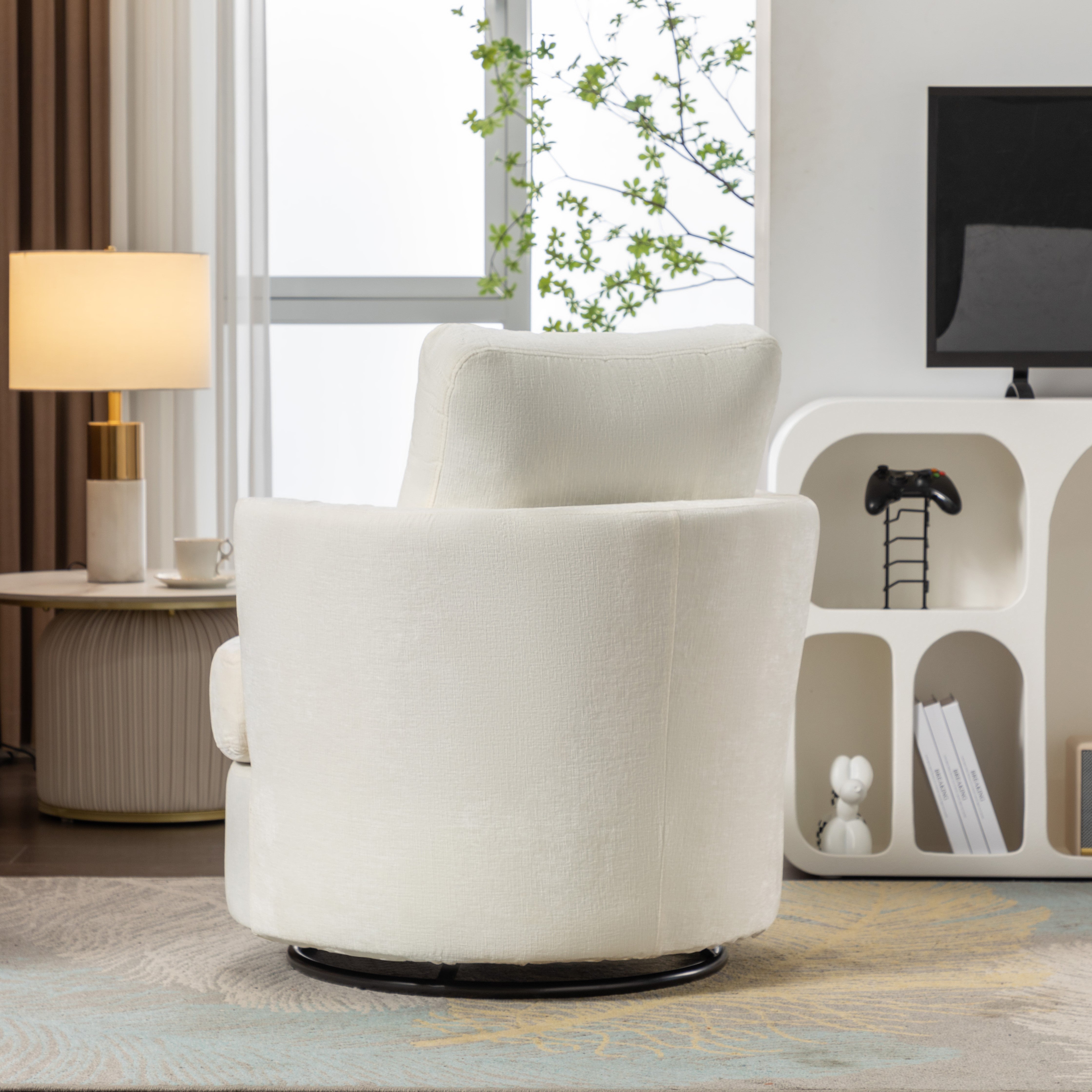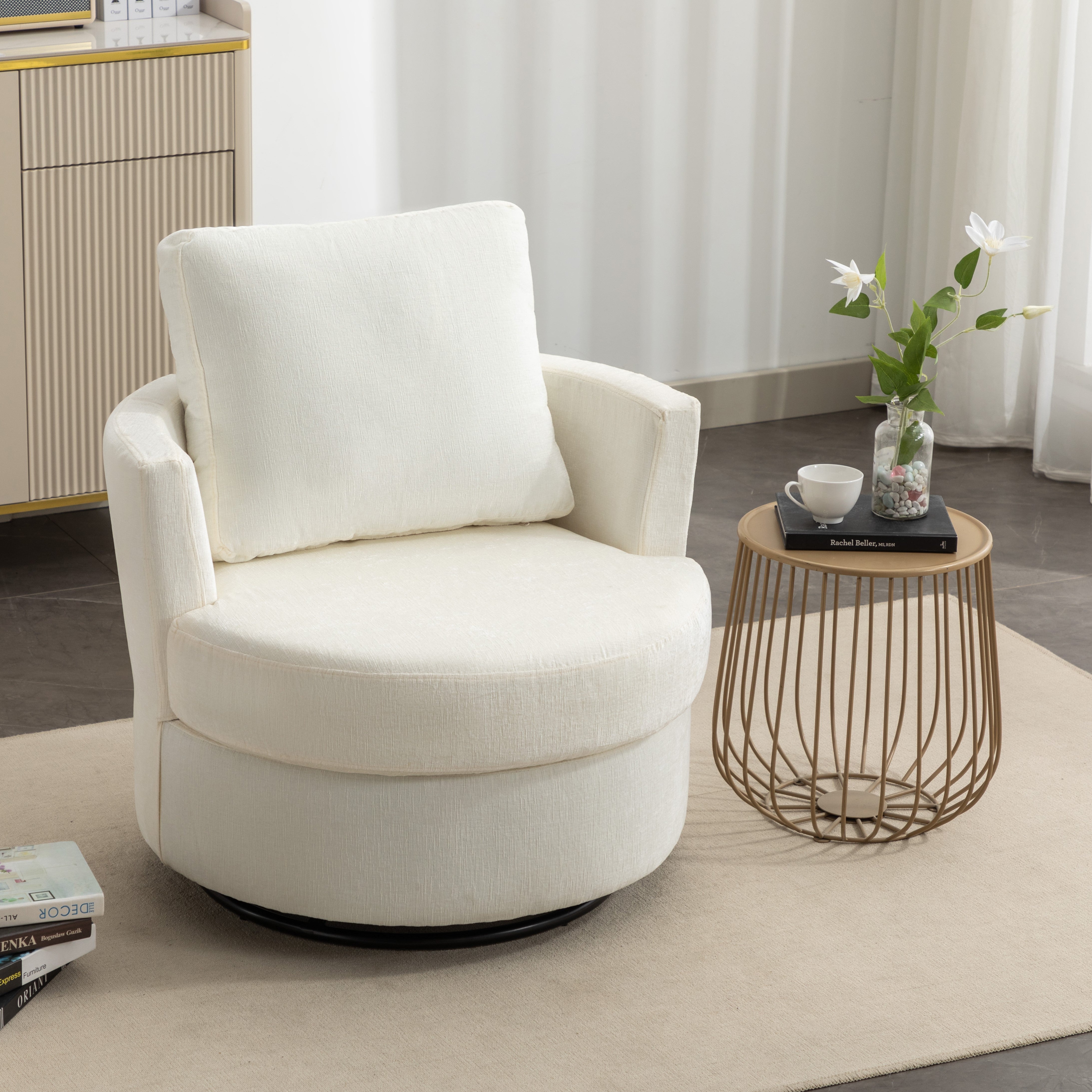 Chenille Swivel Recliner with Back Cushion, Thick Foam Padding, 360° Rotation, 83x78.5x86 cm, Ivory