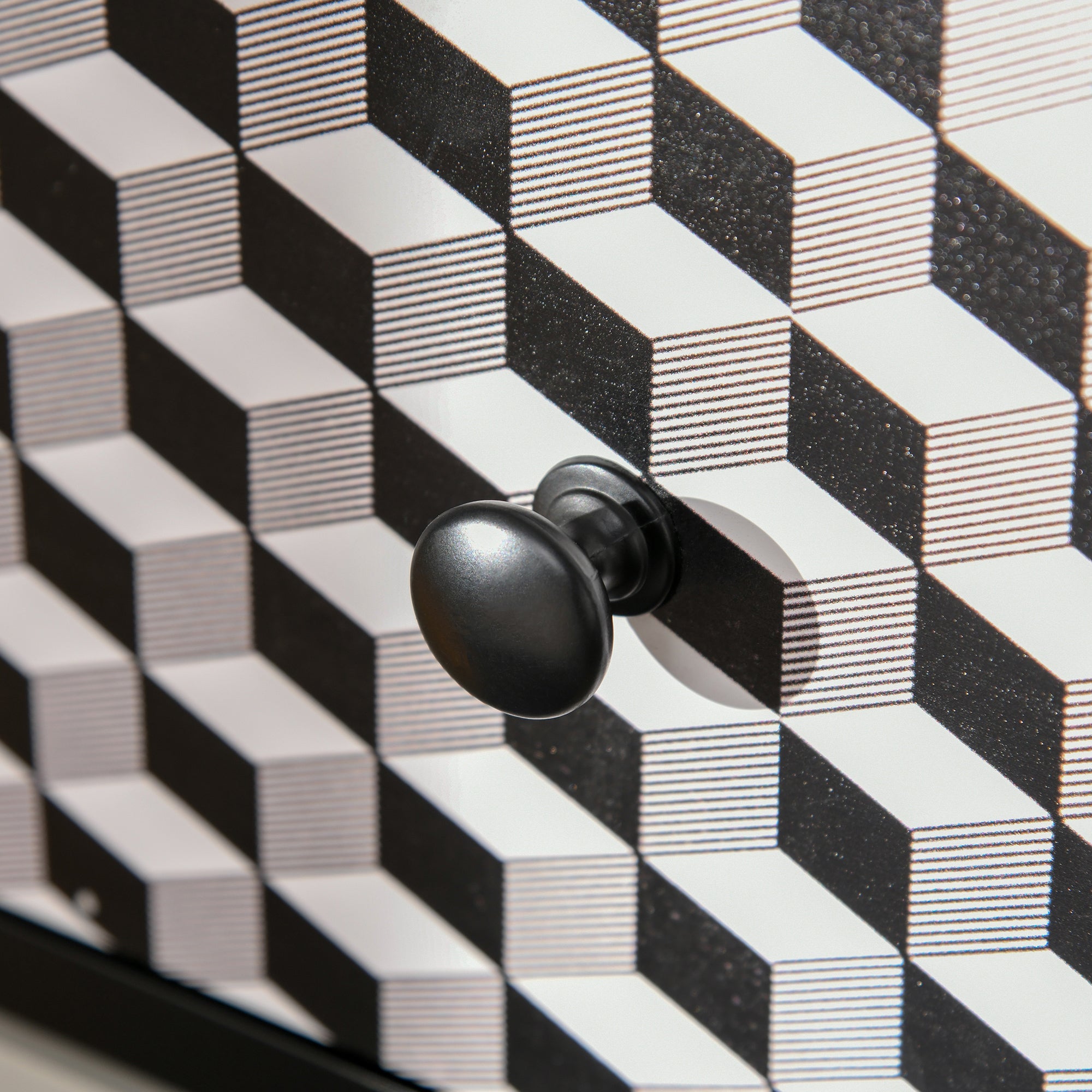 Geometric patterns on the drawer fronts add special beauty for the whole look