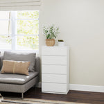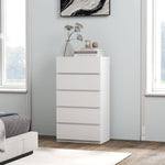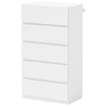 Fresh, spacious and simple, this chest of drawers is the only way to keep your clothes stored and organised. It comes with five drawers, so there's plenty of space for keeping a variety of clothes and more stored. Look to its smooth finish for style - the colour is versatile, so it can be matched with other colours easily. A handle-less design, simply push-click each drawer for smooth opening and closing.