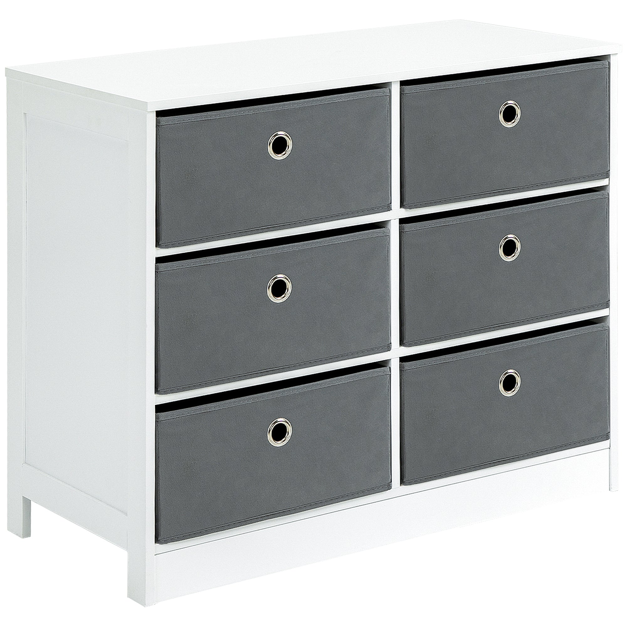 Chests of Drawer, Fabric Dresser Storage Cabinet with 6 Drawers for Bedroom, Living Room and Hallway, White and Grey