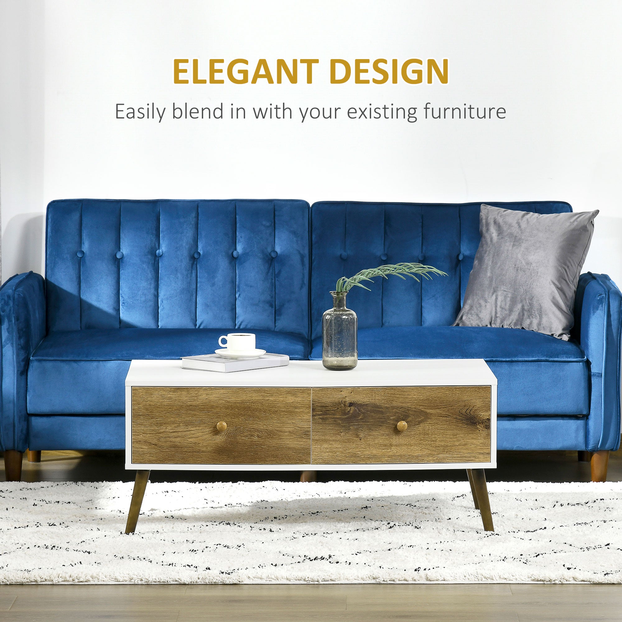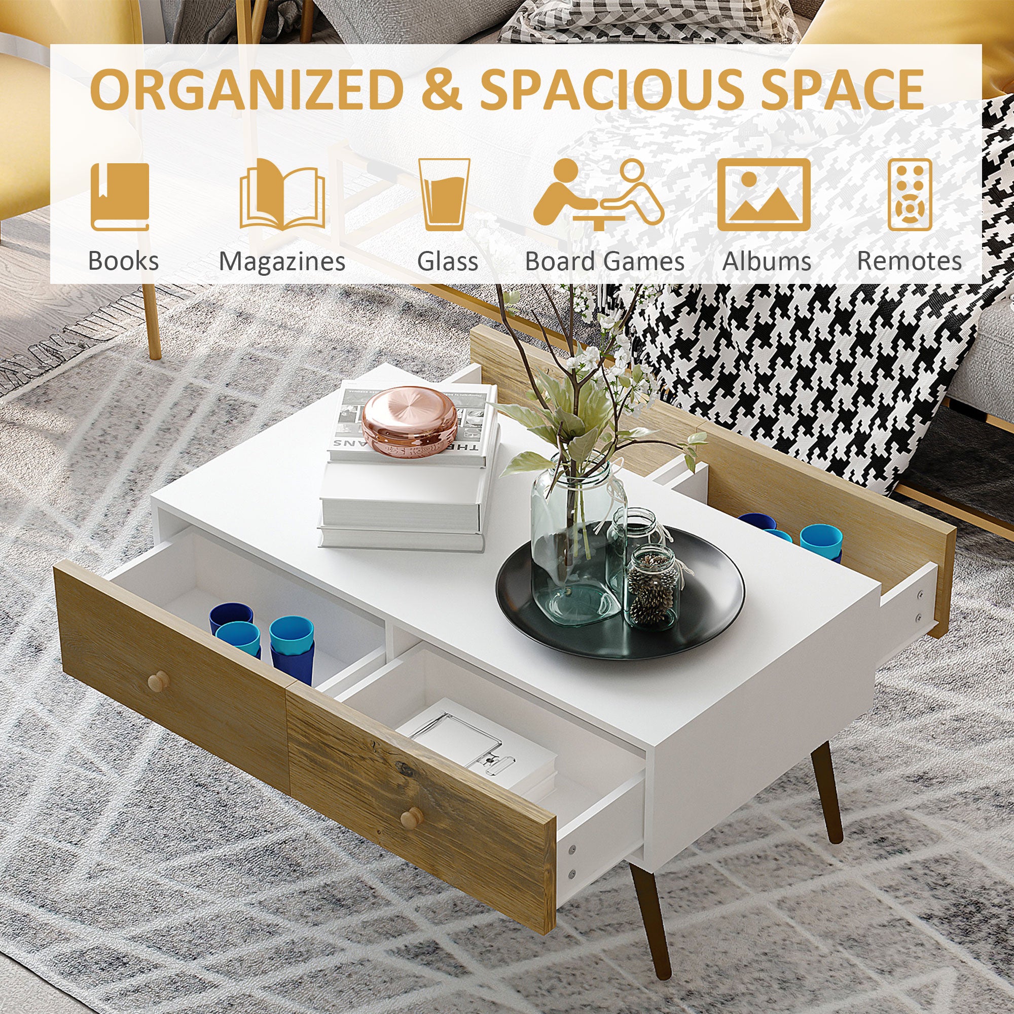 Need a coffee table for leasure time? Come and look at this drawer cabinet designed by HOMCOM! The four-drawer design of the modern graceful white element of the tea table is stylish , which the functional table combined with the natural aesthetic gives you a unique visual experience. With 4 drawers, this living room table allows for lots of and organized storage and practical use in your everyday life. Check out this decorative multipurpose table, and make it a new knickknack for your place.