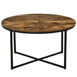 Round Coffee Table, Industrial Side Table with Metal Frame, Large Coffee Tables for Living Room, Bedroom, Rustic Brown