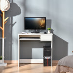 Compact Computer Desk with Keyboard Tray, Home Office Desk with Drawer for Bedroom Study, White