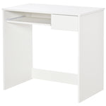 Efficiently save space with this computer desk. Featuring a keyboard tray and a drawer, it saves a lot of desktop space. Constructed of particle board with white surface, it's easy to maintain and brings you the atmosphere of nature. Its contemporary look will blend beautifully into any style decor. It's a great choice for you to have this desk in your study, office, or bedroom to enrich your furniture while saving space!