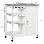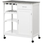 Compact Kitchen Trolley Utility Cart on Wheels with Wine Rack, Drawer, Open Shelf and Storage Cabinet for Dining Room, White