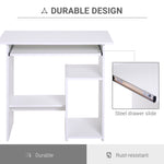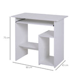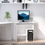 Compact Small Computer Table Wooden Desk Keyboard Tray Storage Shelf Modern Corner Table Home Office White