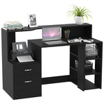 Computer Desk with Drawers and Storage Shelves, Reception Desk, Study Workstation for Home Office, 137 x 55 x 92cm, Black