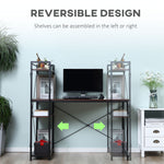 The industrial writing desk from is designed with space-saving and multifunction in mind. It comes with a 4-tier bookshelf which can be assembled on left or right side as required. The large open area underneath enables you to comfortably stretch your legs after long working hours. With elegant and functional design, this desk with shelves is a great addition to your study or living room and can be used for either home office.