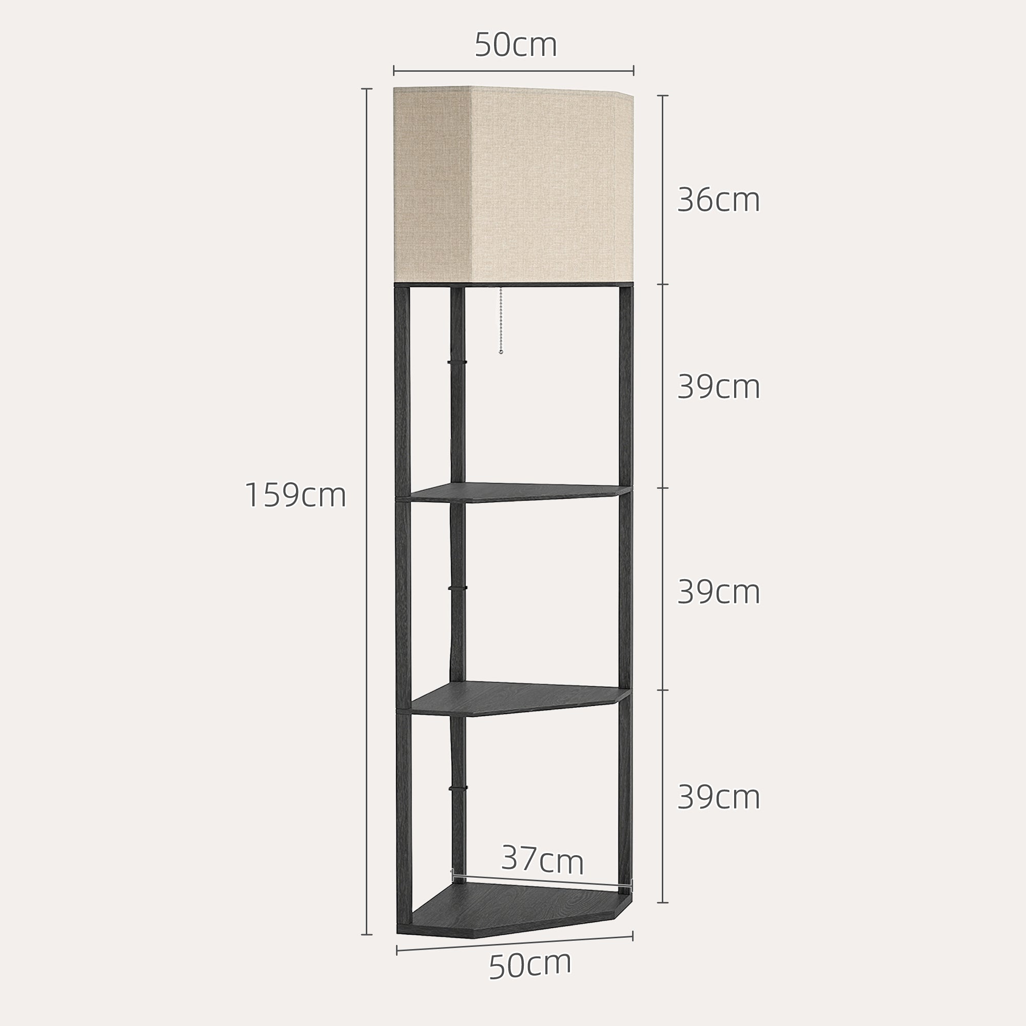 Corner Floor Lamp with Shelves, Modern Tall Standing Lamps for Living Room, Bedroom, with Chain Switch Bulb not Included, Black