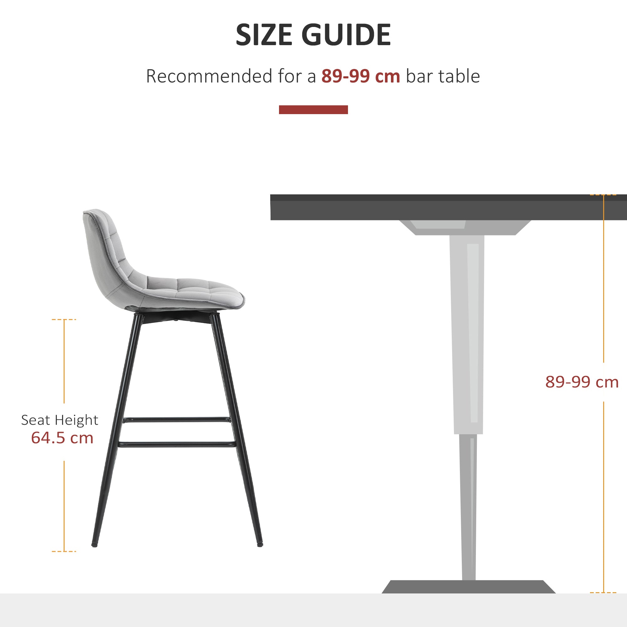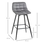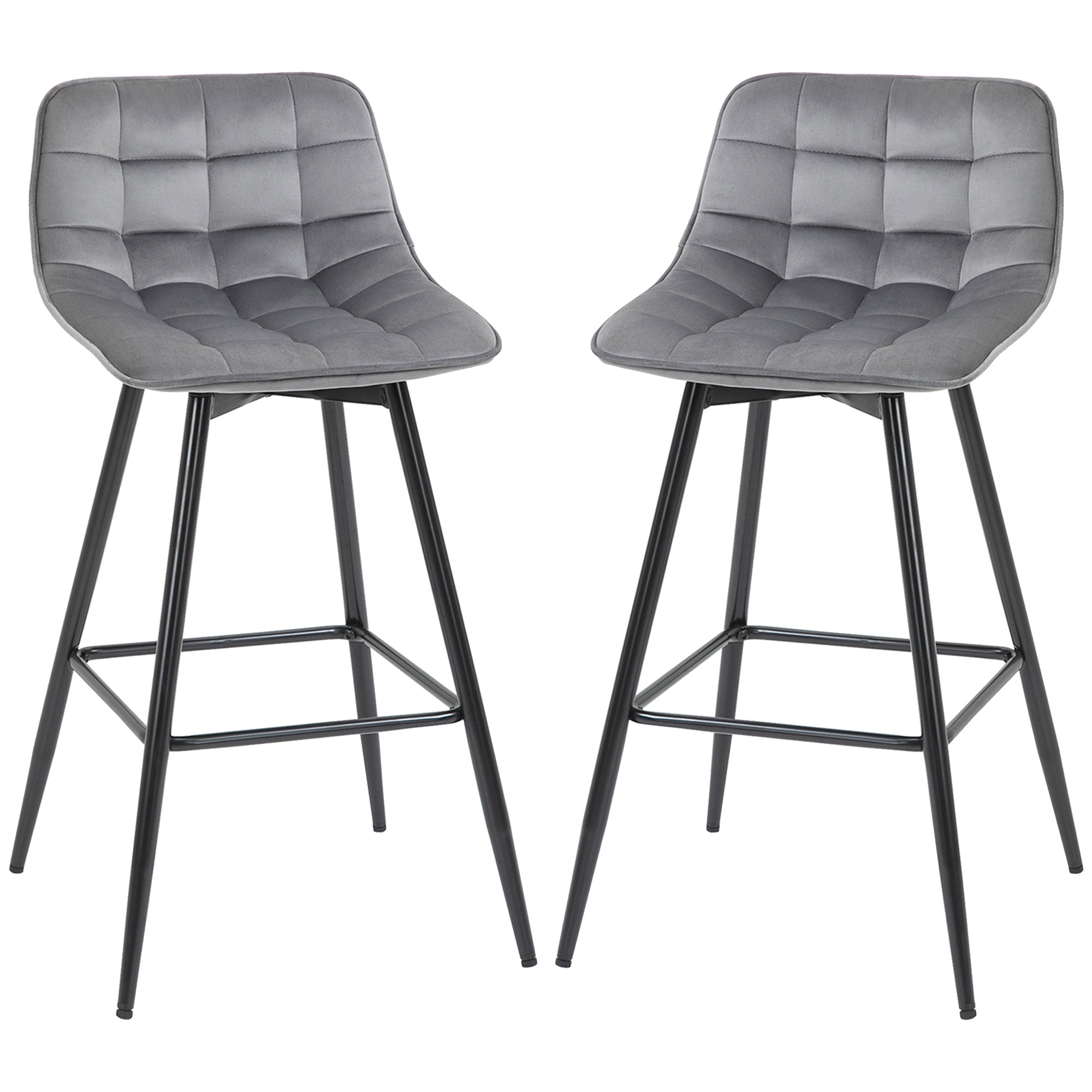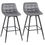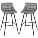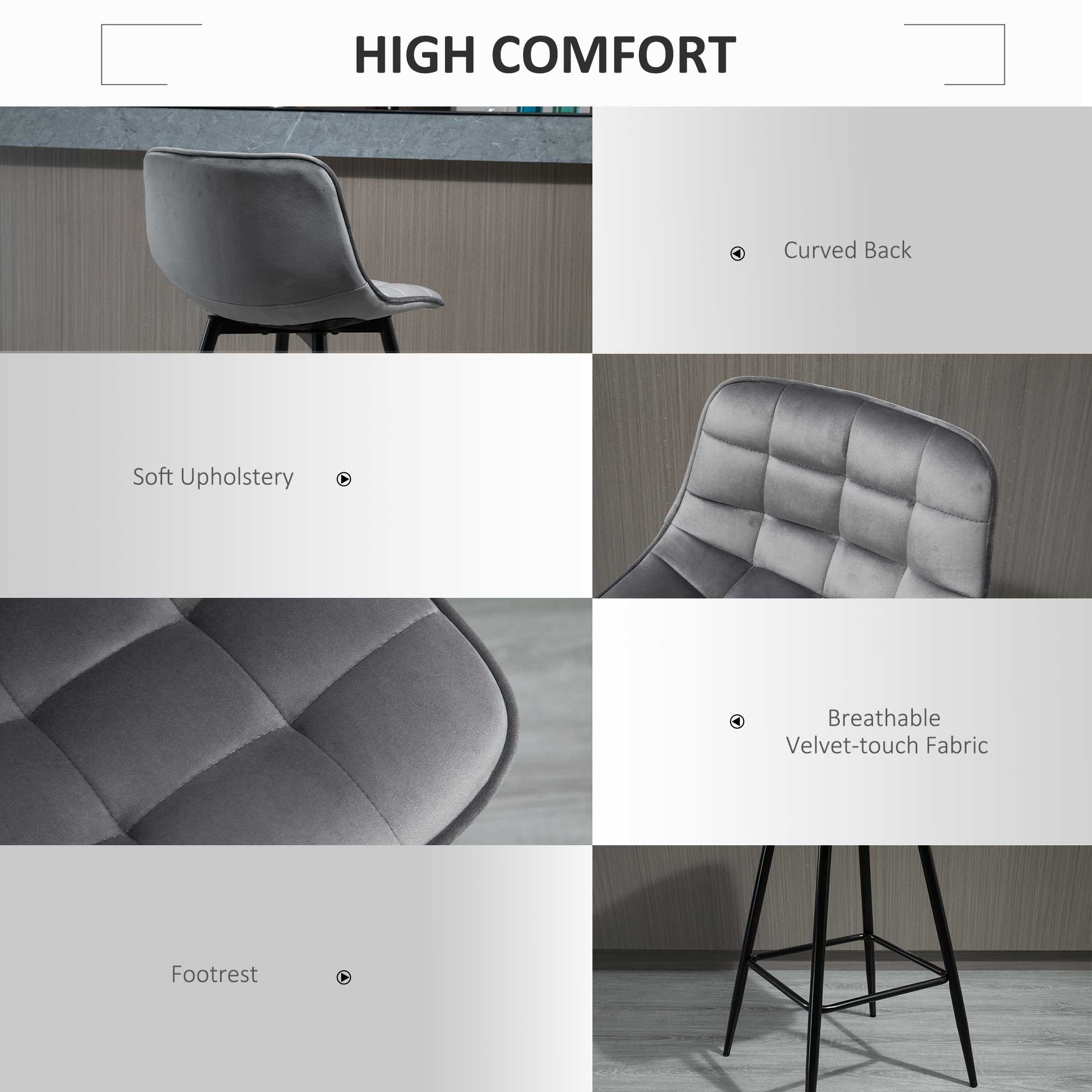 Set of 2 Bar Stools Velvet-Touch Dining Chairs Kitchen Counter Chairs Fabric Upholstered seat with Metal Legs, Backrest, Grey
