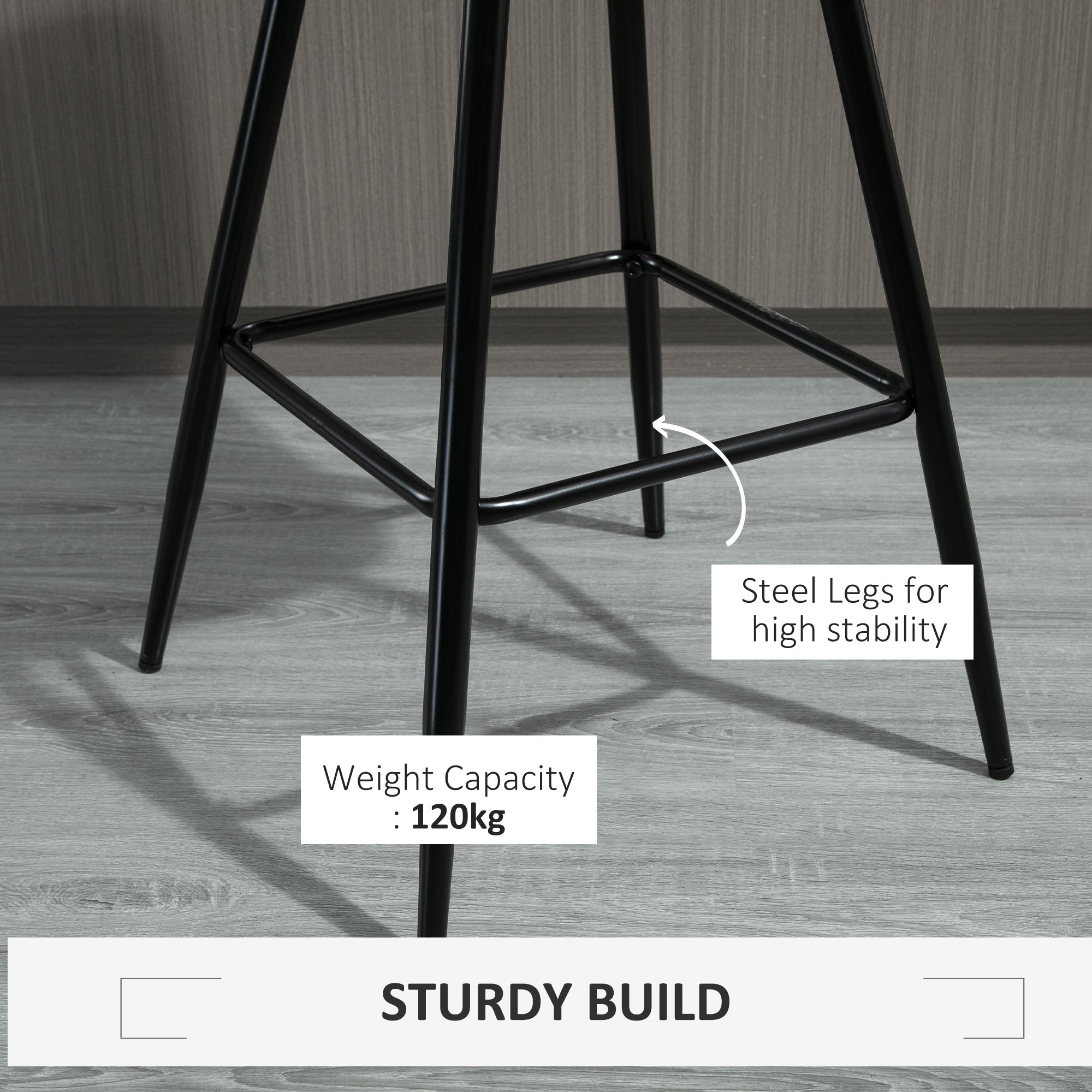 Let these two stools from do all the stylish talking for your home and beyond. Each seat is formed into an open design, where it curves gently and softly for you to sit with ease. Padded with sponge for comfort, the seats are wrapped in velvet-feel upholstery which is soft on the skin. Made from steel and formed into an 'A' shape, the base of each bar stool is sturdy and will ensure you are seated with complete balance. They are finished with foot bars so your legs aren't left dangling.