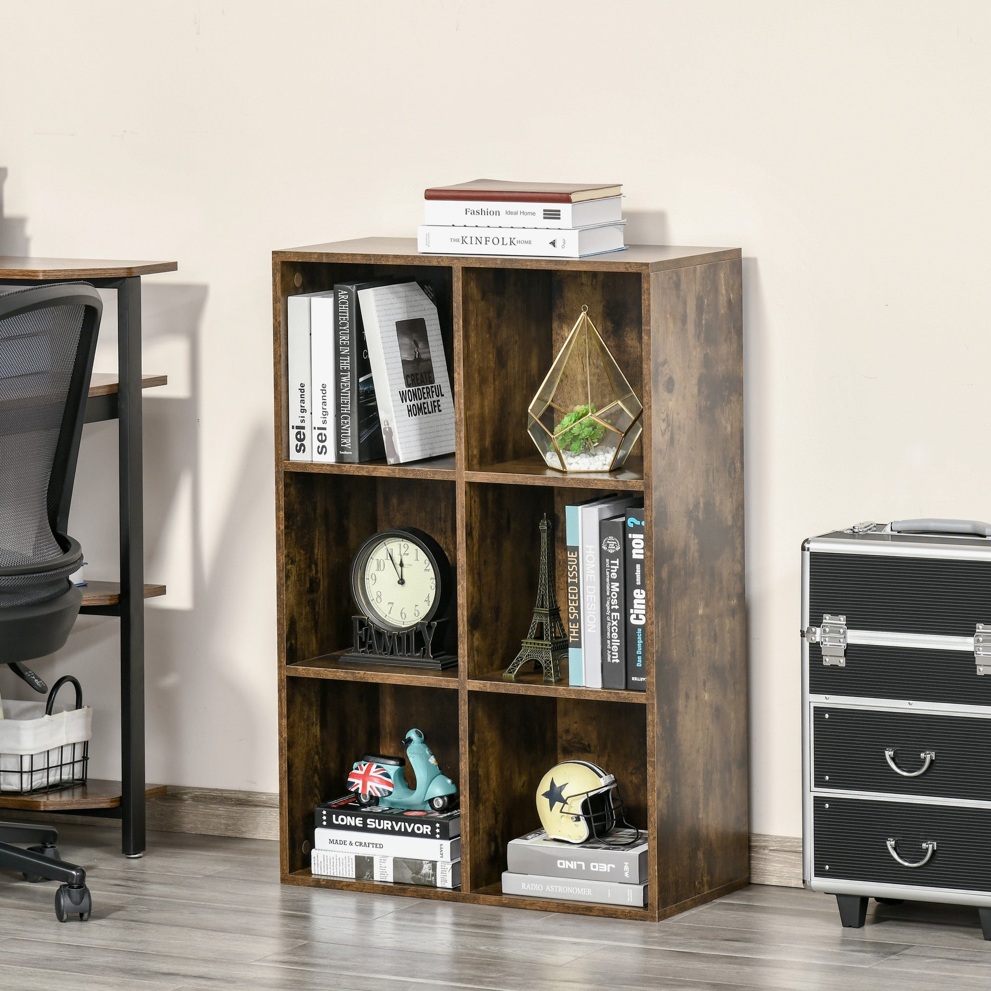 Six-Cube Bookcase - Rustic Brown Wood Effect