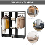 Open Wardrobe Double Mobile Storage Shelves Organizer W/6 Wheels-Black