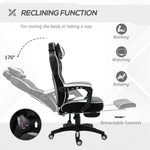 Fulfil your need for some serious style with this gaming chair with footrest. It's fitted with thick sponge for comfort and wrapped in sleek faux leather with contrasting panels. Comfortable in design, it features a high back, armrests, a five-wheel base and can swivel around 360°. Whether it's work or play, the gaming chair for adults is a good choice.