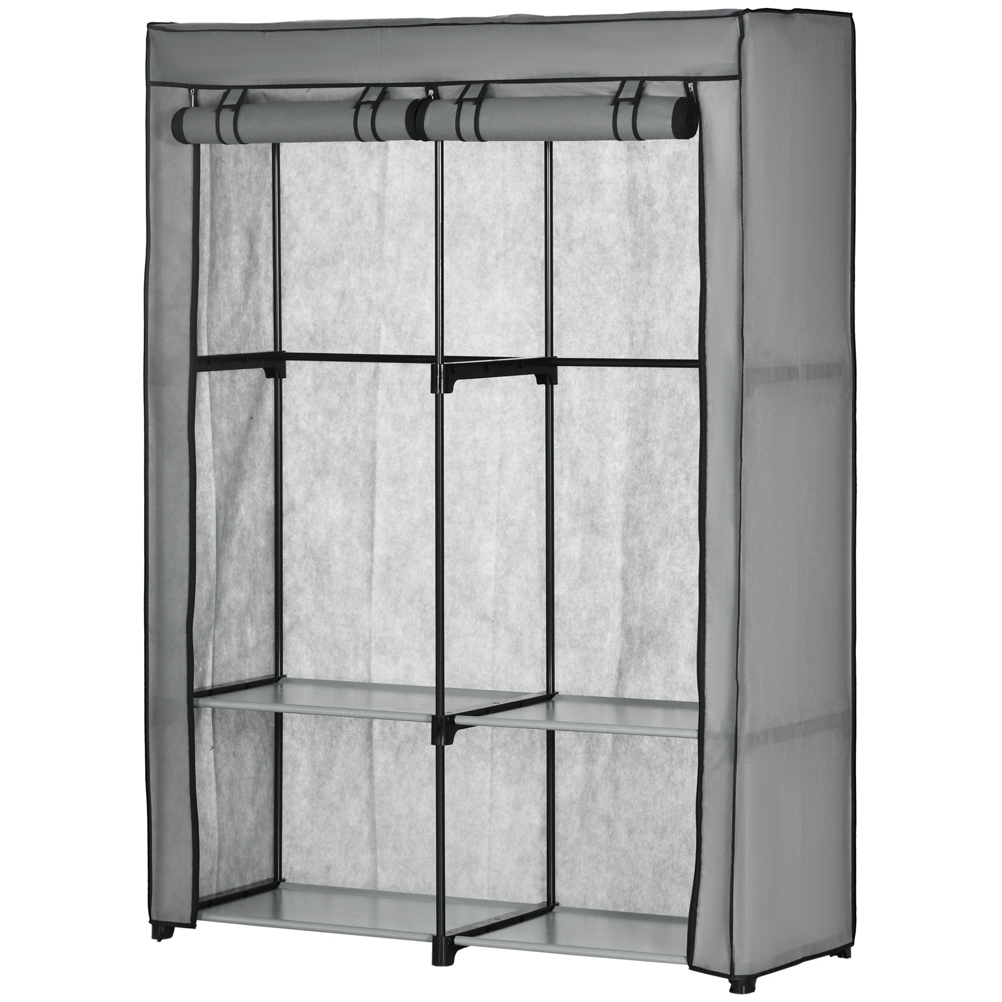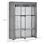 Steel Frame Fabric Wardrobe, with Rail and Shelves - Light Grey