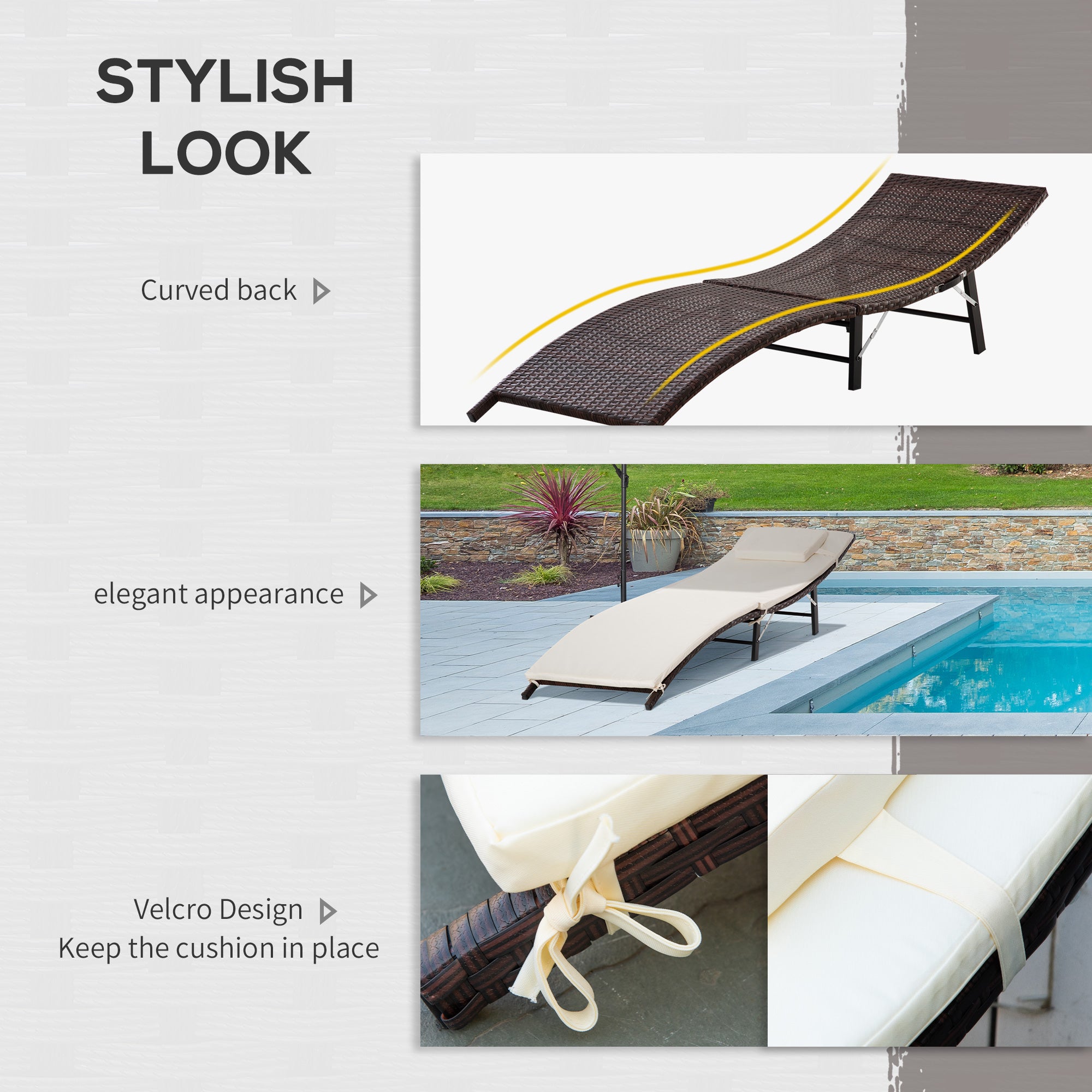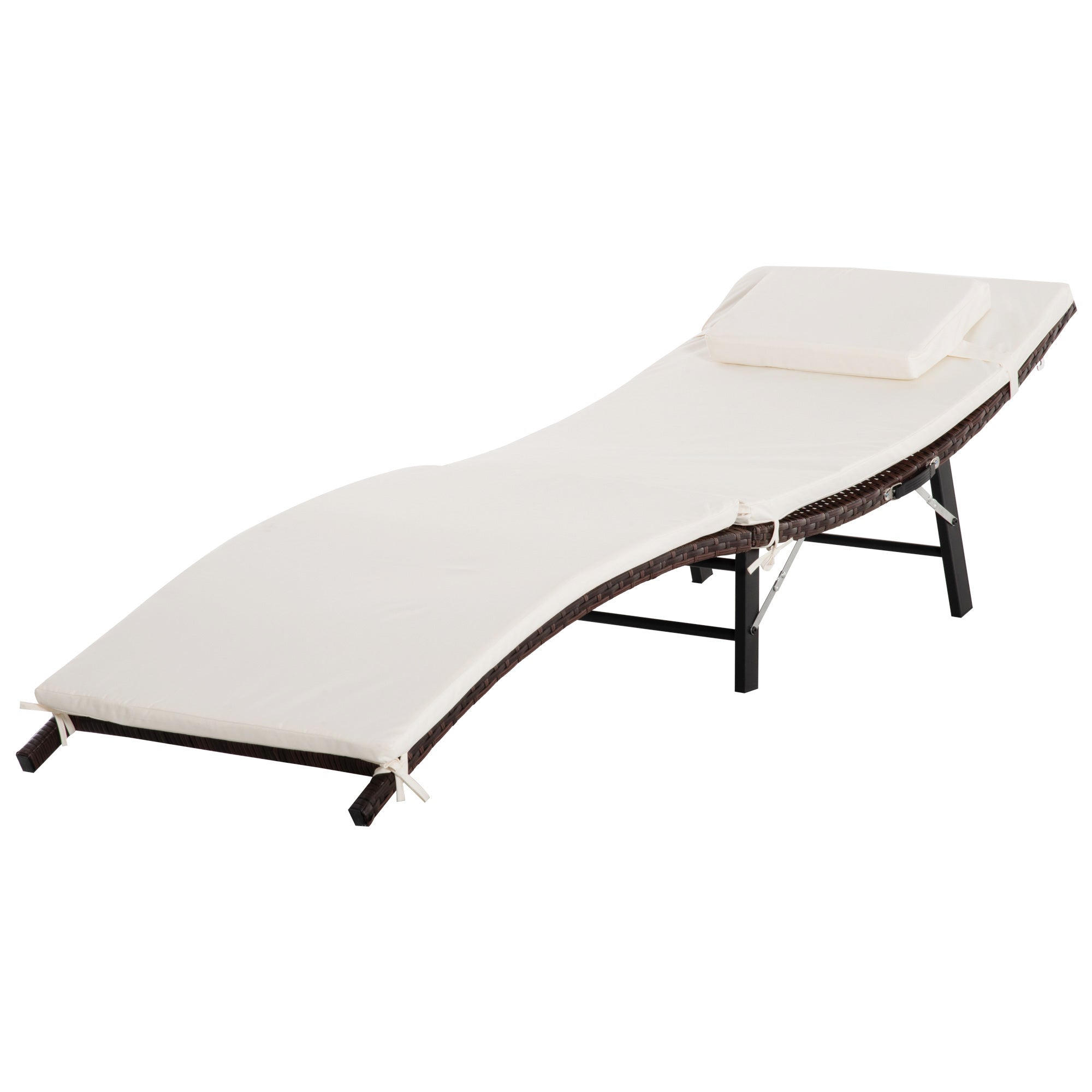 Rattan Folding Sun Lounger Outdoor Chair with Cushion and Pillow Cream White