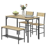 Square Dining Set for 4 Persons, Table, Chairs and Bench Included, Natural Wood Effect