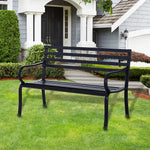 Stylish 2 Seater Metal Garden Porch Chair Bench Stable Patio Outdoor Park Metal Bench - Black