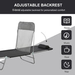 Outdoor Foldable Sun Lounger, Adjustable Backrest Garden Recliner Sun Lounger Chair with Headrest Pillow, Black