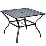 94 x 94 cm Garden Table with Parasol Hole, Outdoor Dining Garden Table for Four with Slatted Metal Plate Top, Black