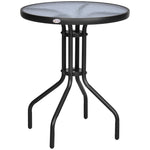 Bistro Coffee Table Outdoor Tempered Glass Top Table Garden Round Dining Table - 60cm Diameter