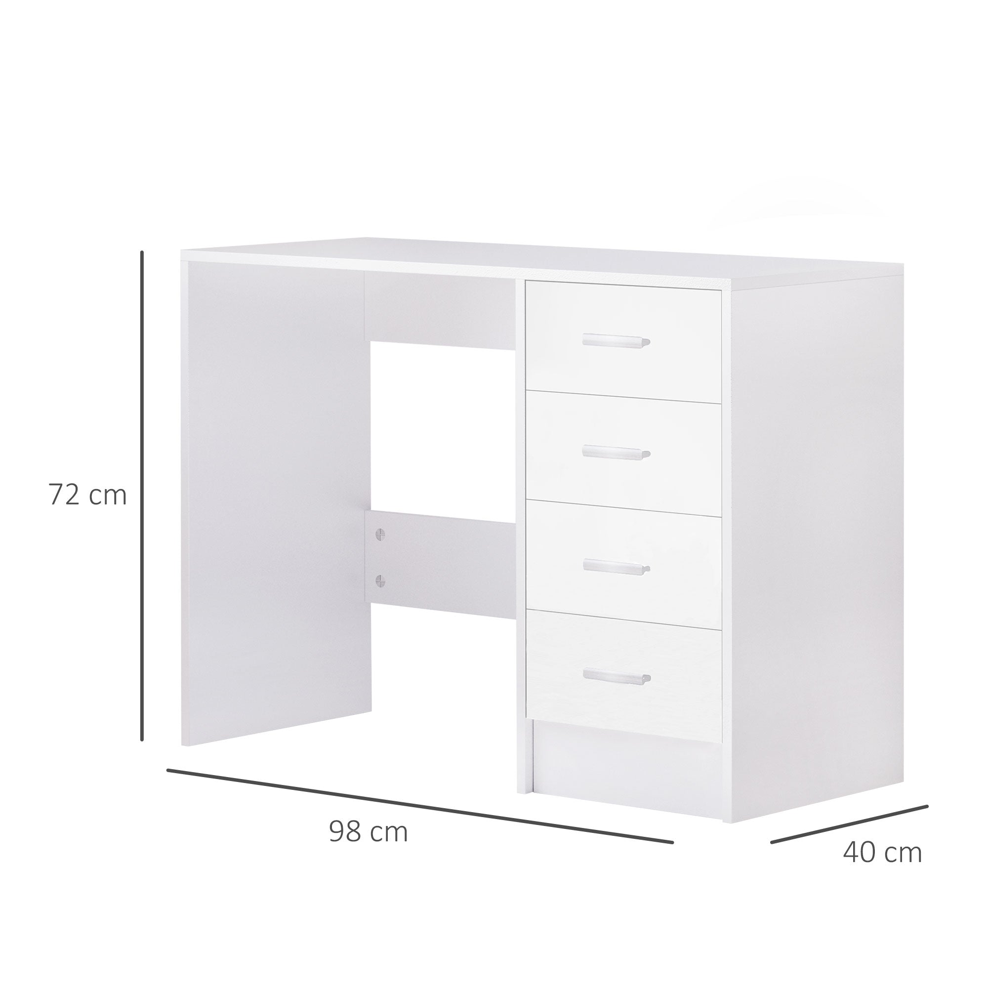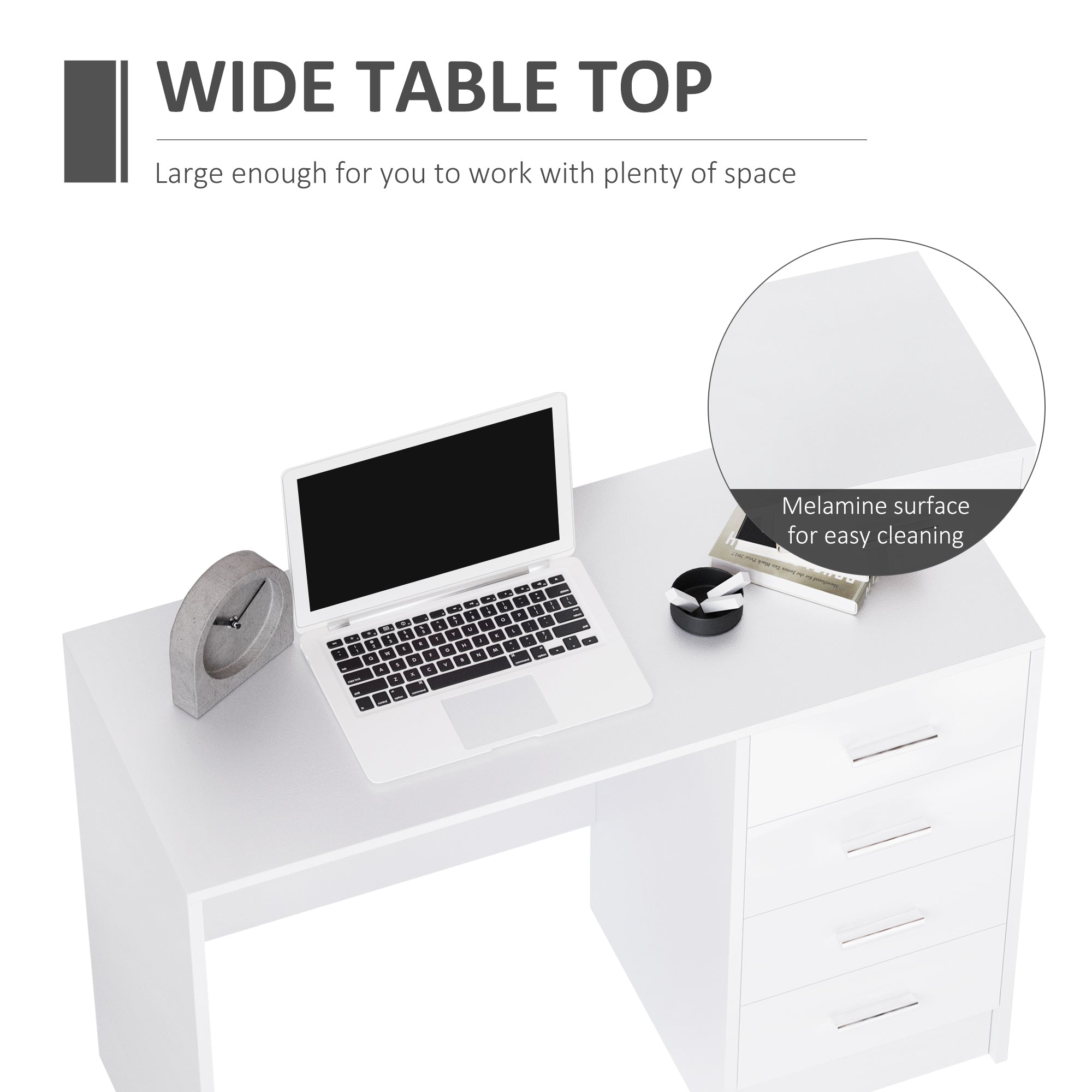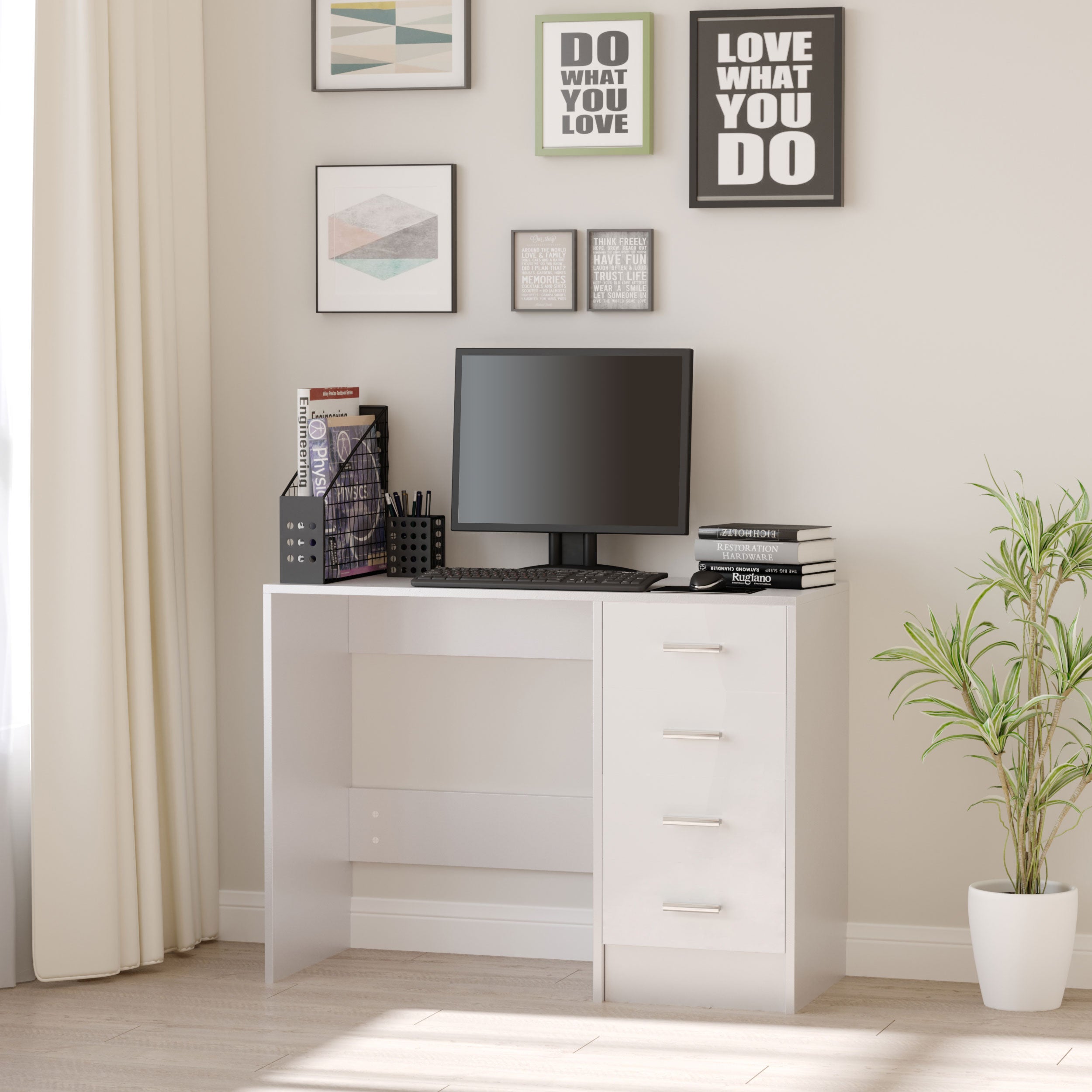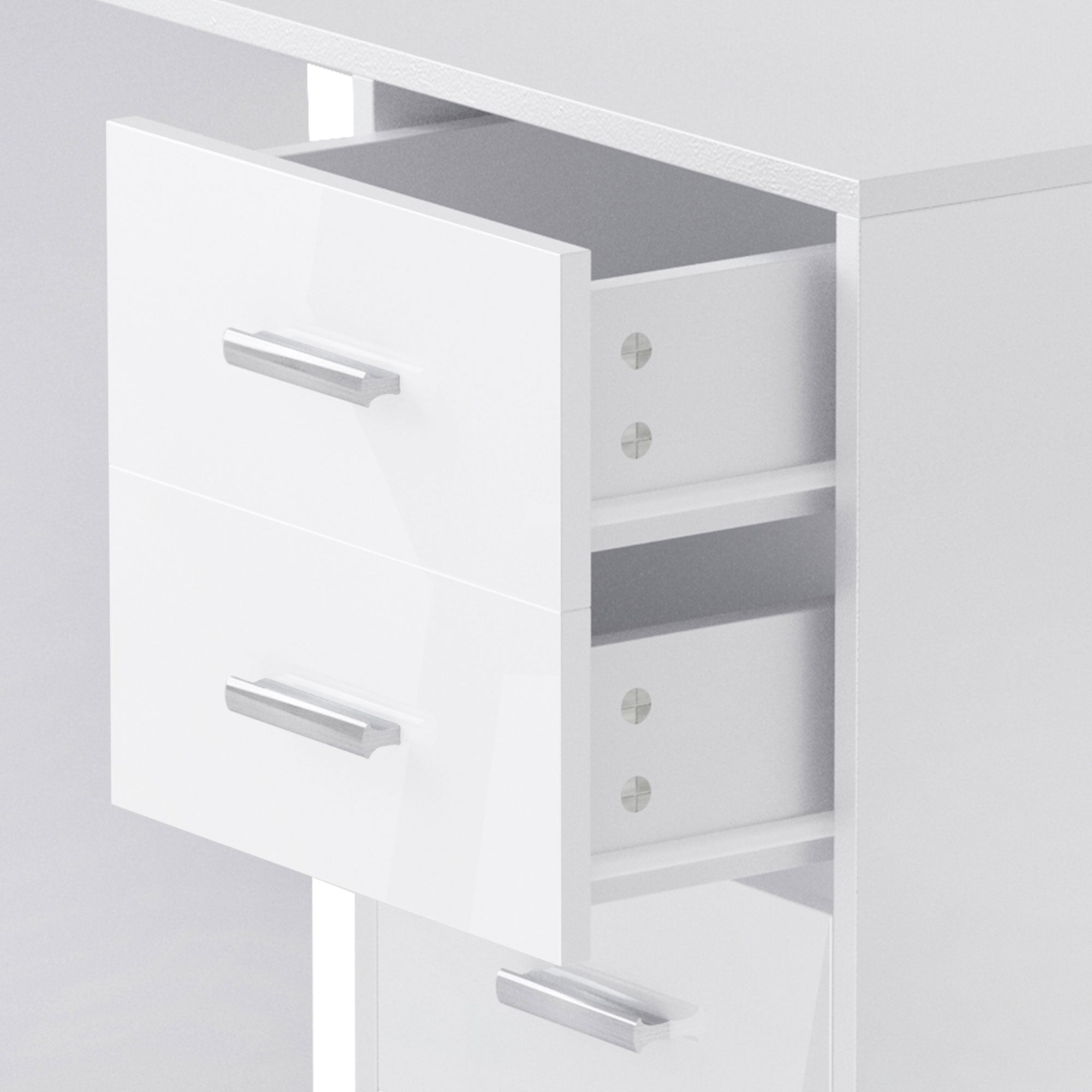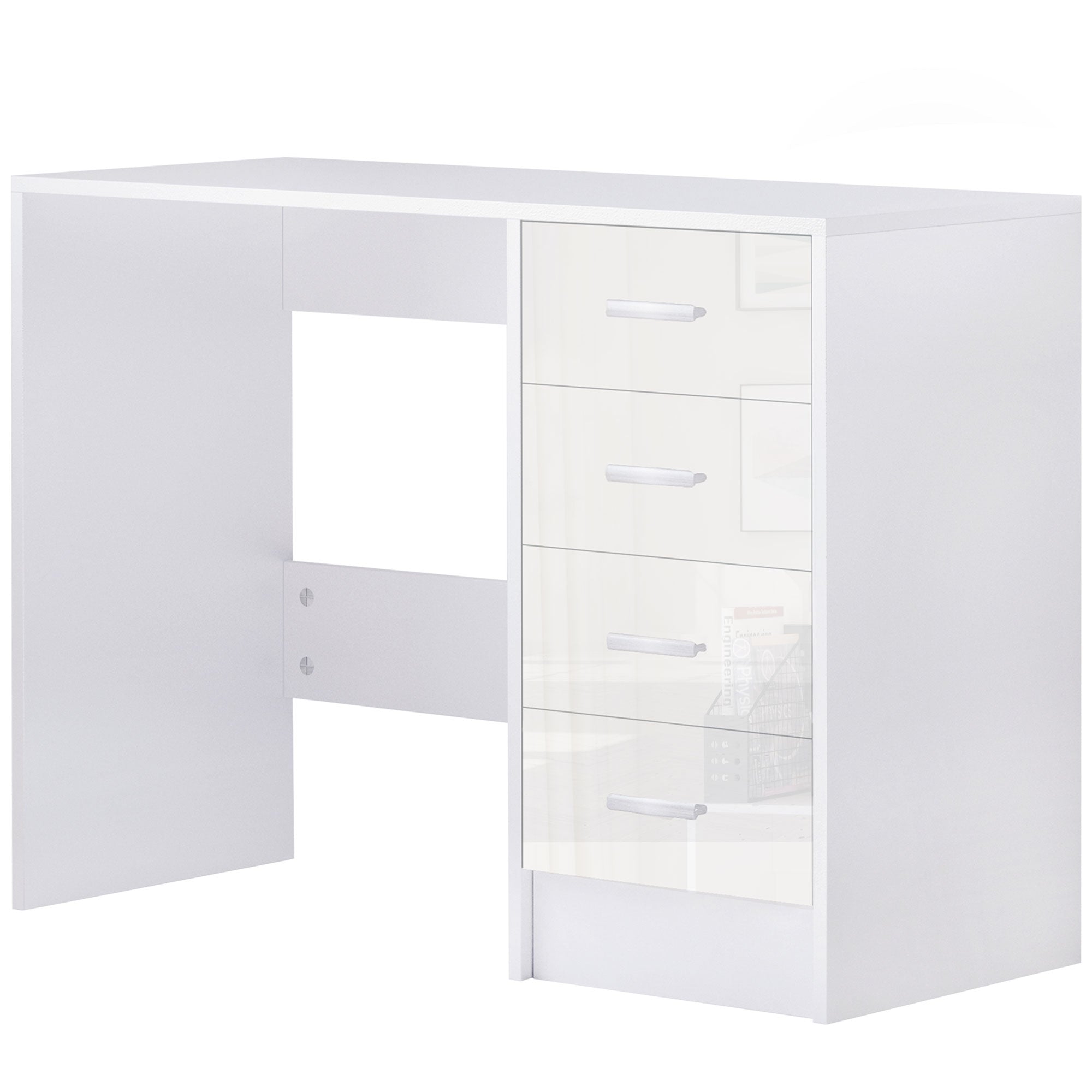 Computer Desk with Drawers, Dressing Table, High Gloss Home Office Writing Workstation, White