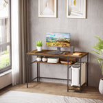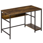 Computer Desk with Storage, 120 x 60cm Home Office Desk with 2 Shelves and Steel Frame, Writing Table for Living Room, Study, Rustic Brown