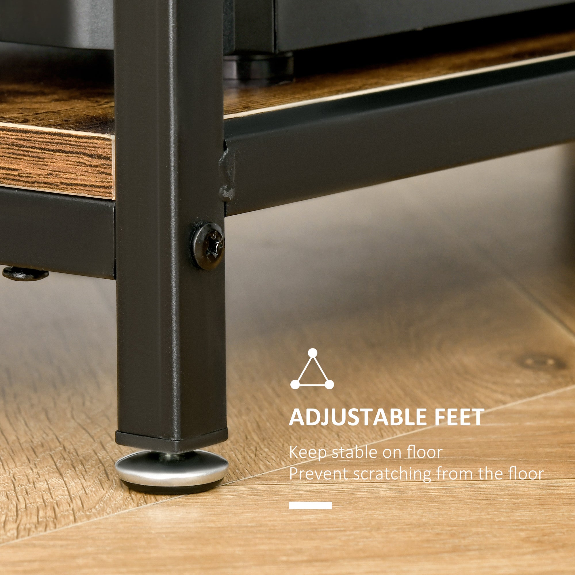 Make room for working anywhere with this desk. Comes with a wide table top, giving you lots of room to work, as well as holding a monitor, laptop, keyboard and more. Features middle shelf for holding all essentials close to hand, with the bottom side shelf your CPU. Steel legs for full support, finished with adjustable feet to keep it balanced.