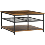 Coffee Table, Living Room Table with 3-Tier Storage Shelves, Square Tea Table for Home Office, Rustic Brown