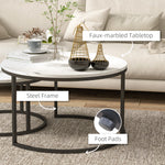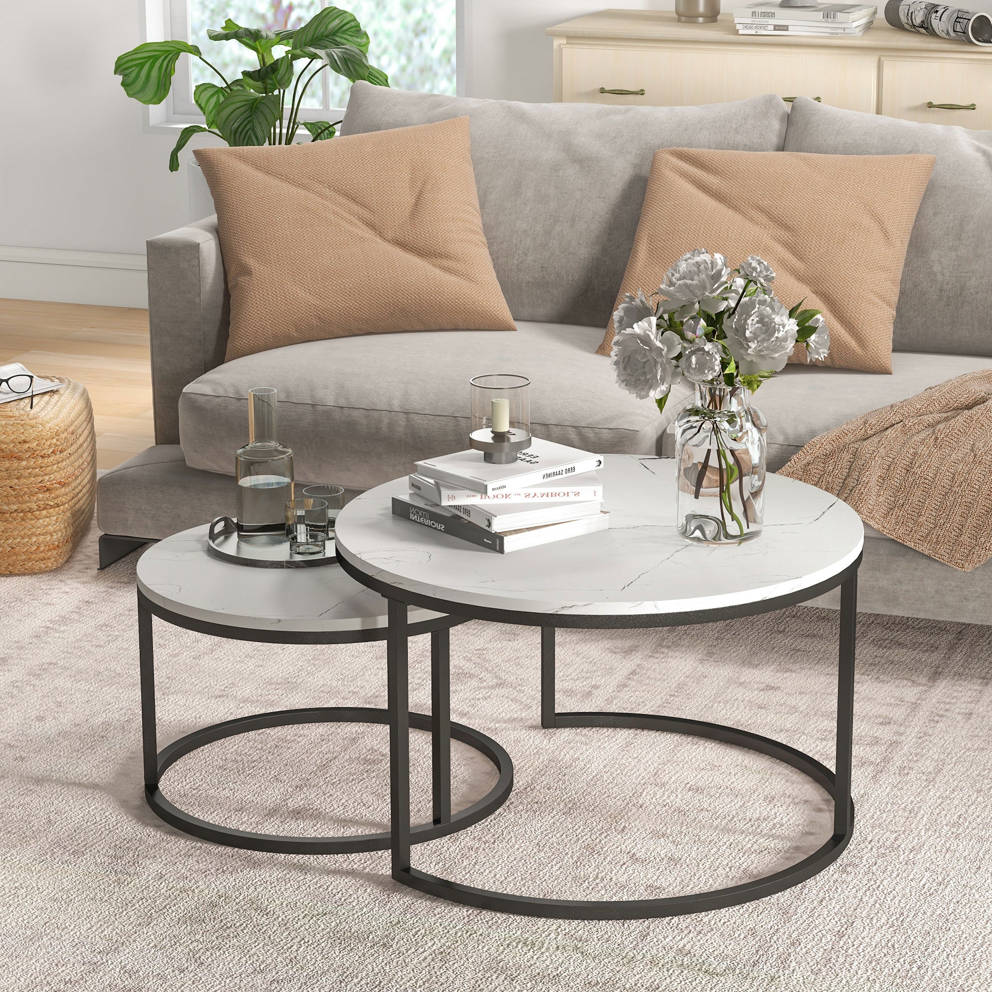 Set of Two Marble-Effect Stacking Tables - Black/White