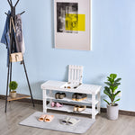 Shoe Bench, 3-Tier Wooden Shoe Rack with Hidden Storage Compartment, Slatted Shelves, Home Storage Unit, Hallway Furniture, White, 90L x 29W x45H cm
