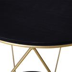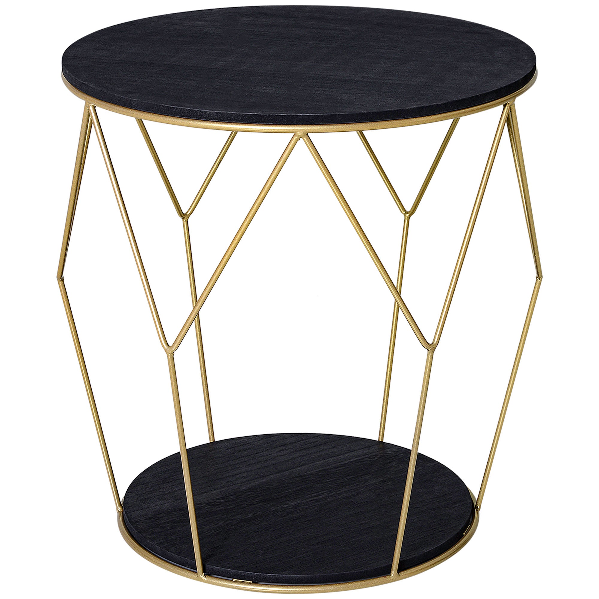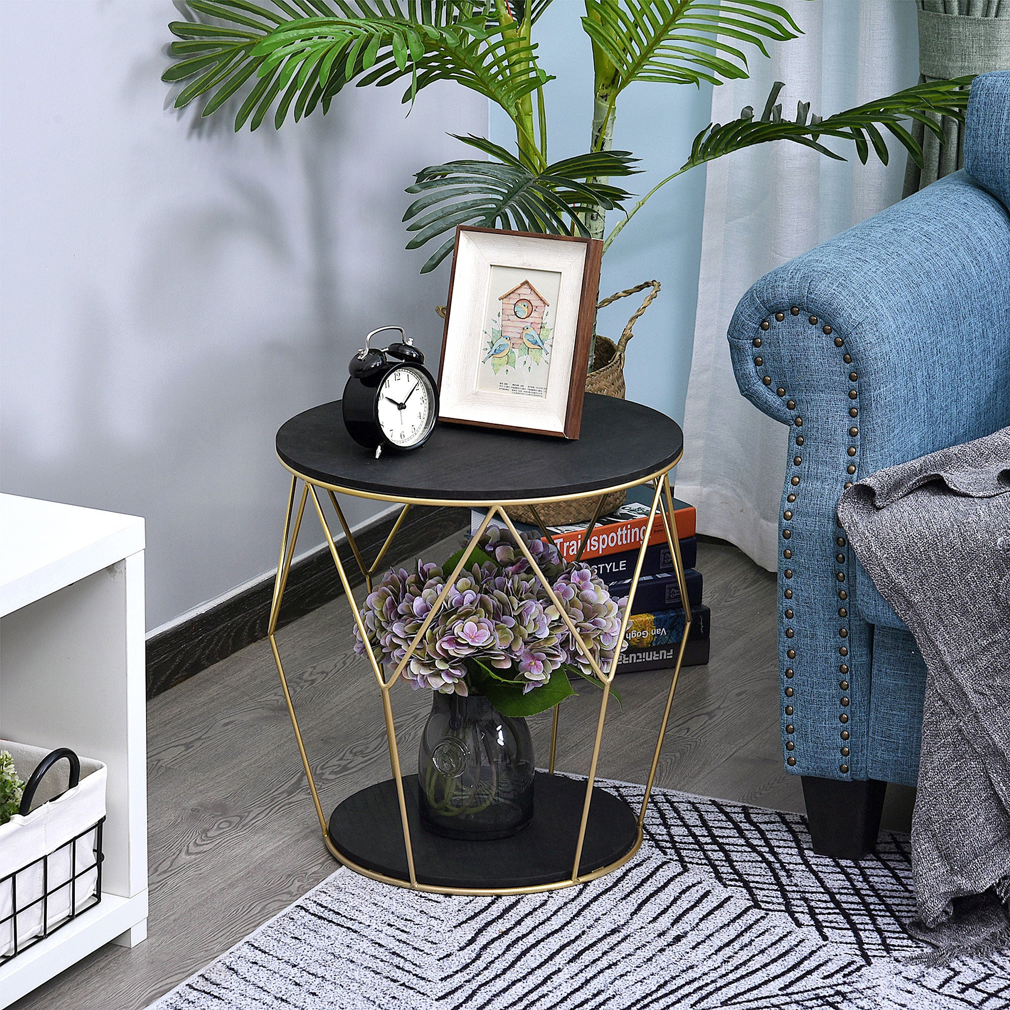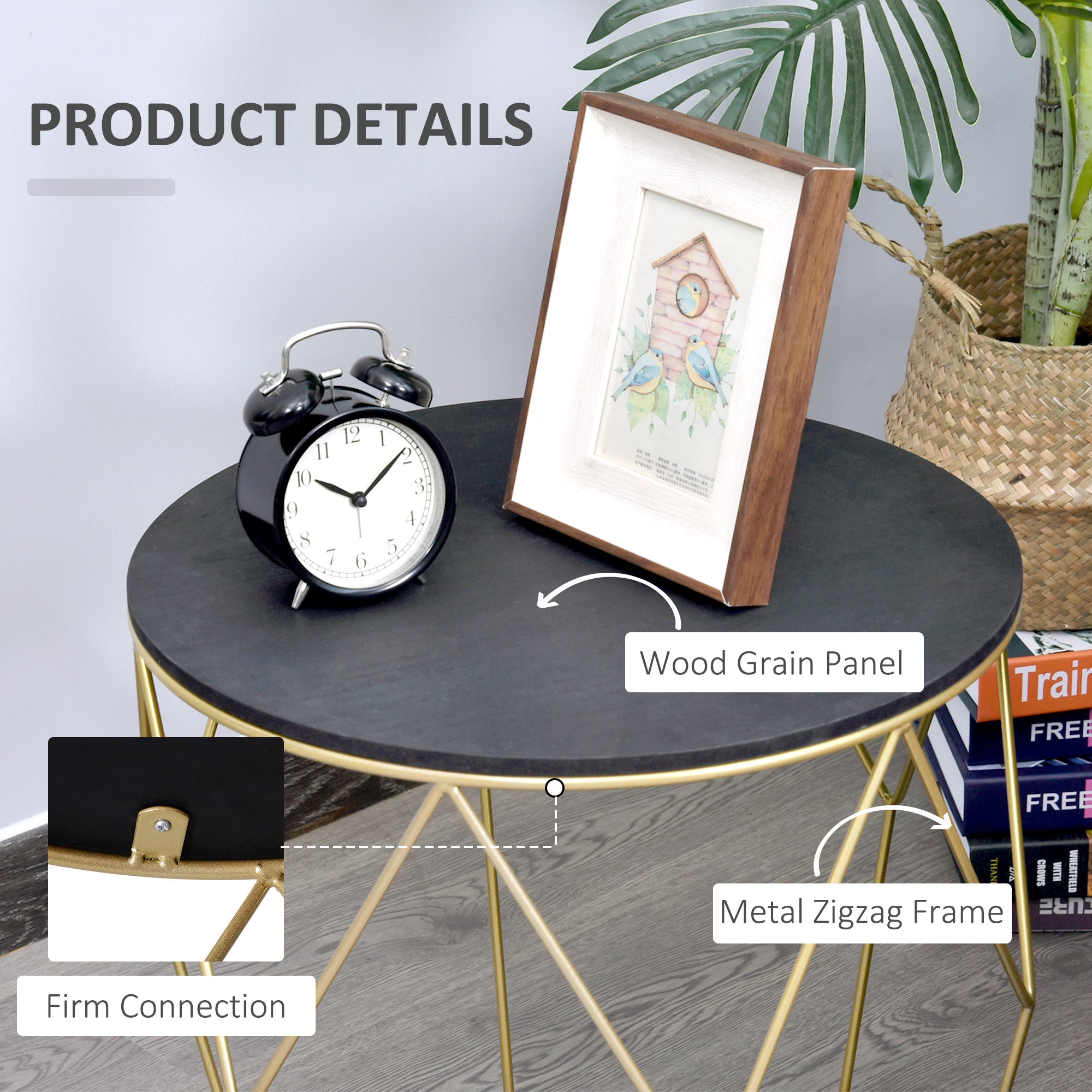 Round Coffee Table with Storage, Modern Sofa Side Table with Metal Frame, End Table for Bedroom, Living Room, Black and Gold, 45 x 45 x 48 cm