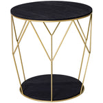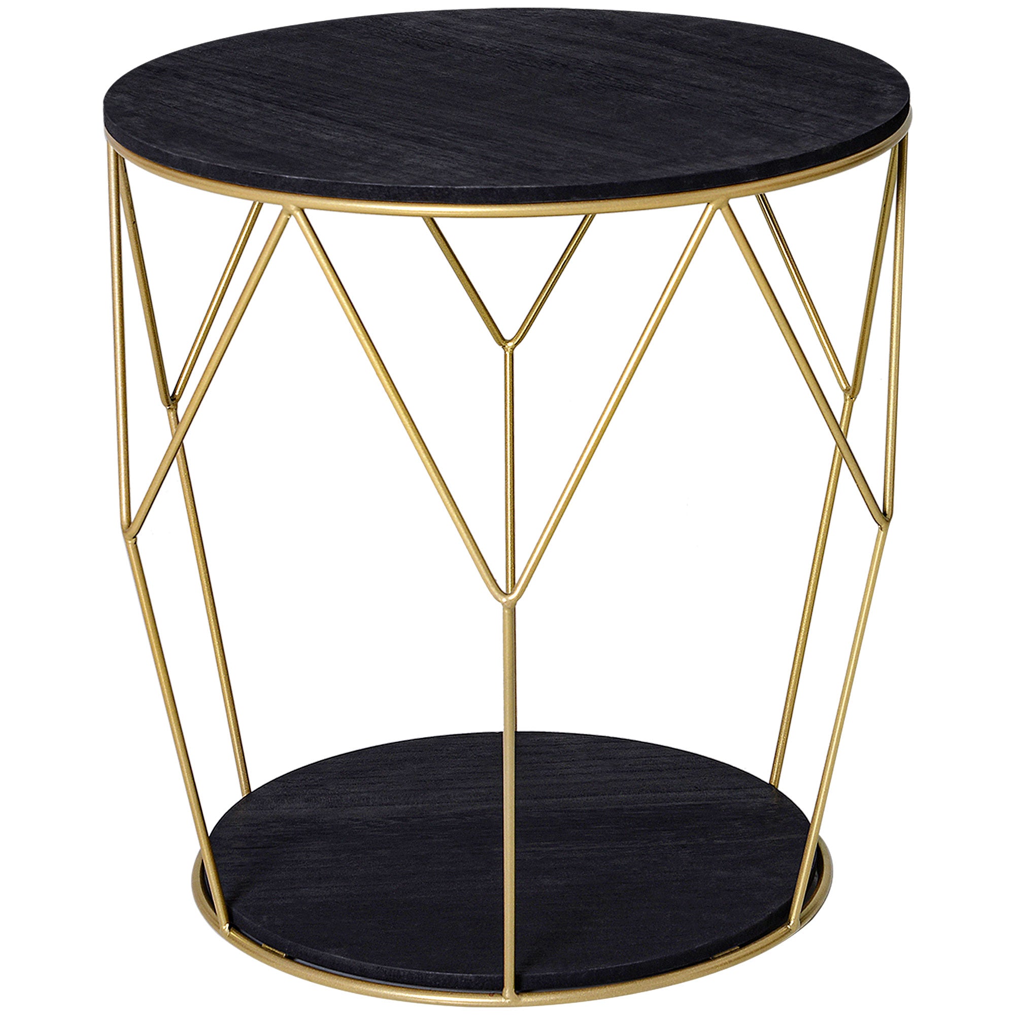 Bring home the perfect piece to make your living room or bedroom stand out, with this elegantly bold side table. Made into a distinctive drum shape design, it is formed of two parts: the circle panels on both ends and the connecting frame in the middle. Using metal in a muted gold tone, the middle frame is crafted into a zig-zag design, a unique look which provides stability and strength to the table, with a black circle base which keeps the unit balanced and stable on the floor. Also made from MDF, the tabletop provides plenty of room for keeping all you need close to you - making it only only look beautiful, but functional too.