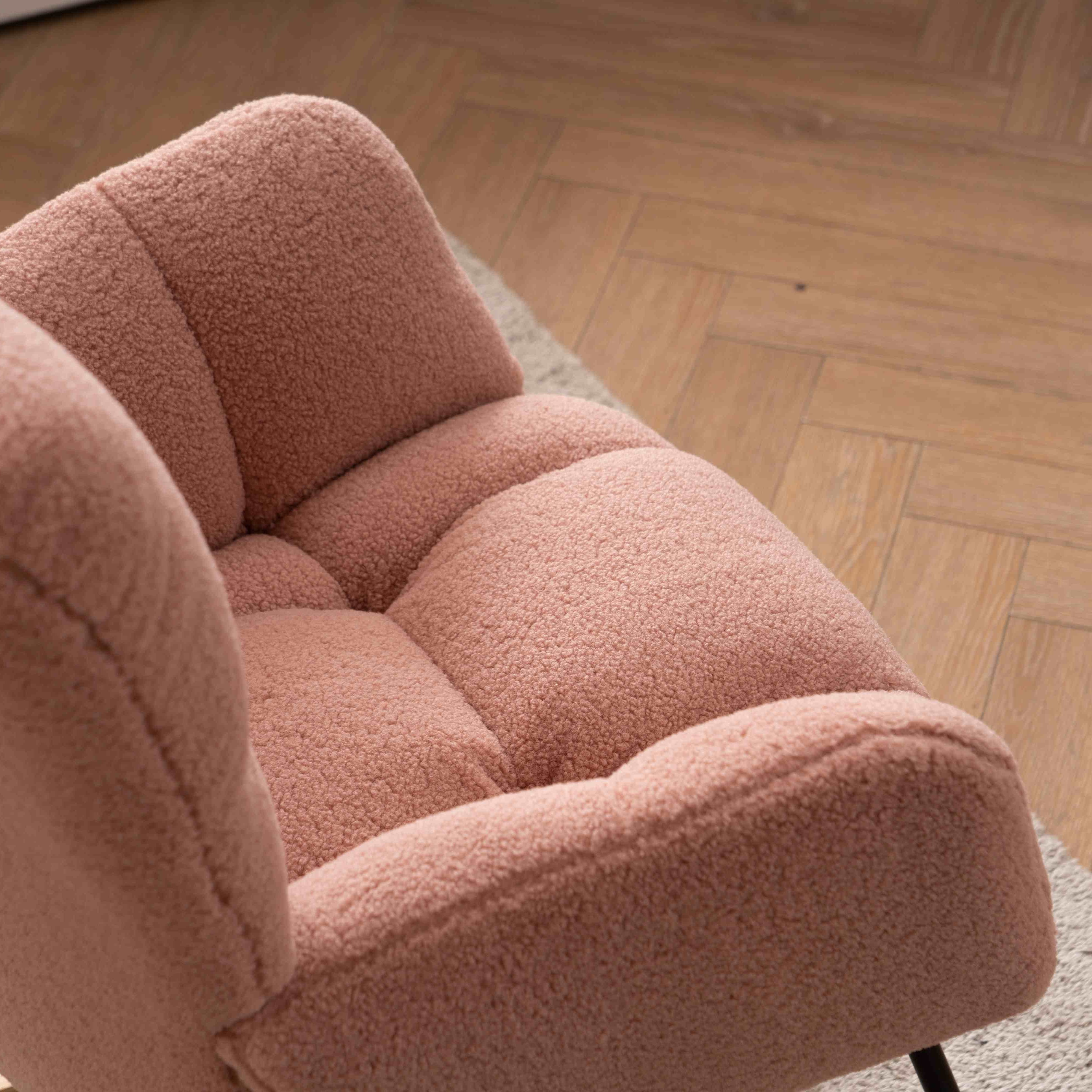 Teddy Fabric Modern Rocker with Padded Seat, Metal Base, Tufted Upholstered Comfy Chairs for Outdoor, 80x70x95 cm, Pink