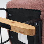 Add a touch of mid-century modern elegance to your home with this Teddy fabric tufted upholstered rocking chair. Perfect for your living room or bedroom, it features a soft teddy material, foam-filled seat, and ergonomic backrest for ultimate comfort. The sturdy wooden frame and black painted metal base ensure durability, while the wooden rocking legs provide a smooth rocking motion. Easy to assemble in just 15 minutes, this stylish pink chair is ideal for anyone aged 7 to 70 and supports up to 50kg.