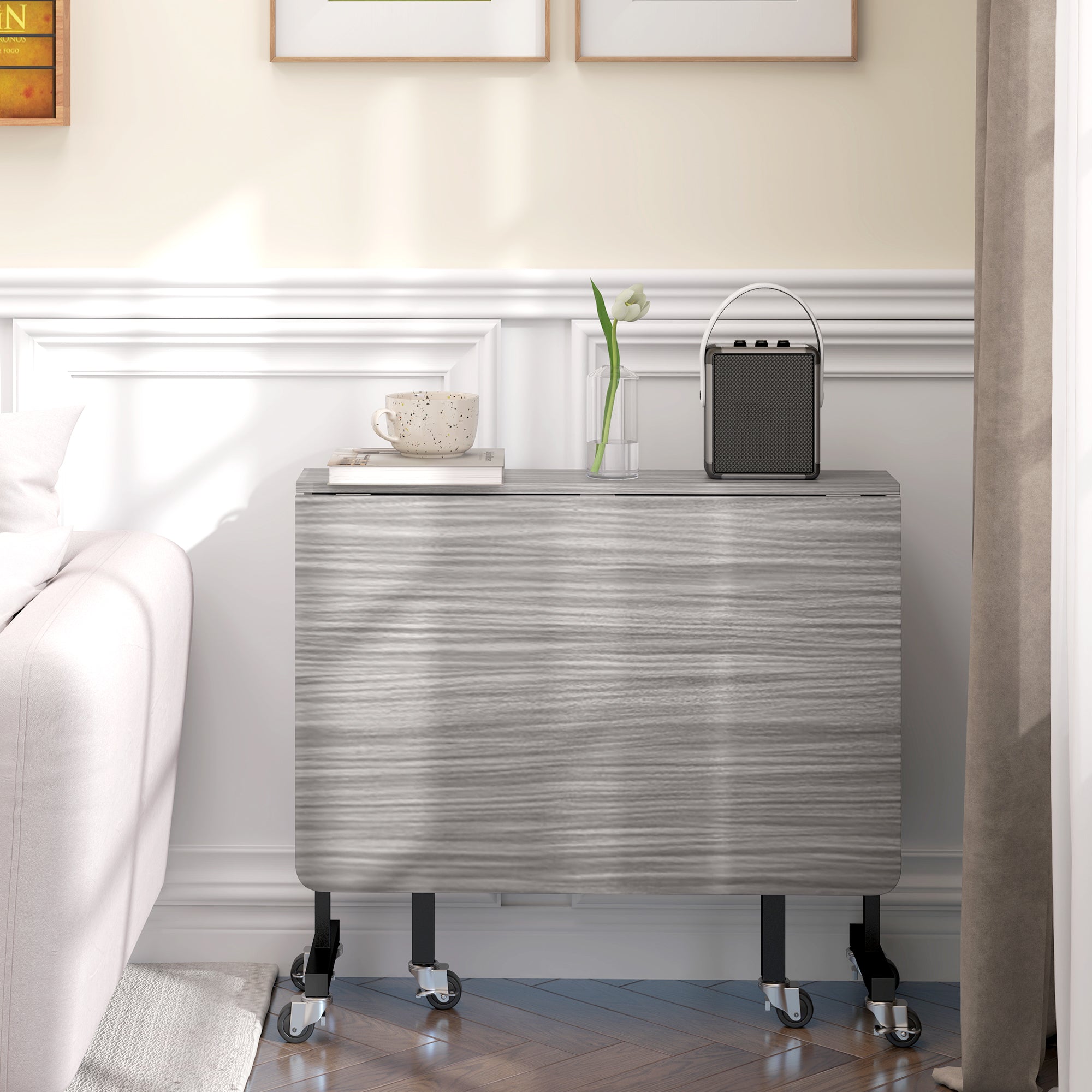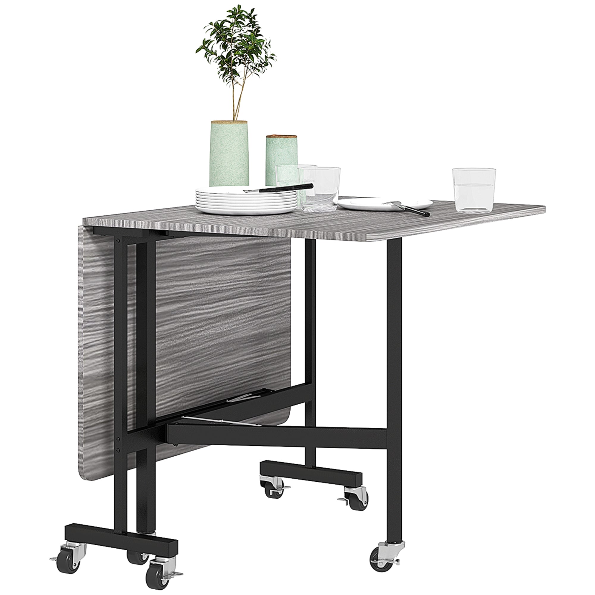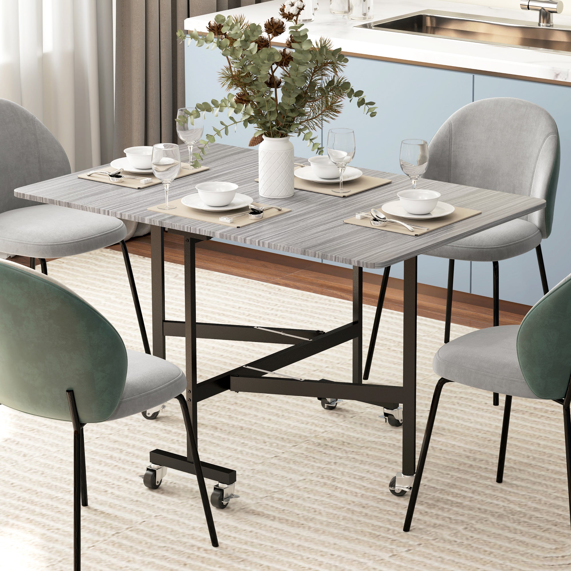 Six-Seater Drop-Leaf Dining Table, with Wheels - Grey Wood-Effect